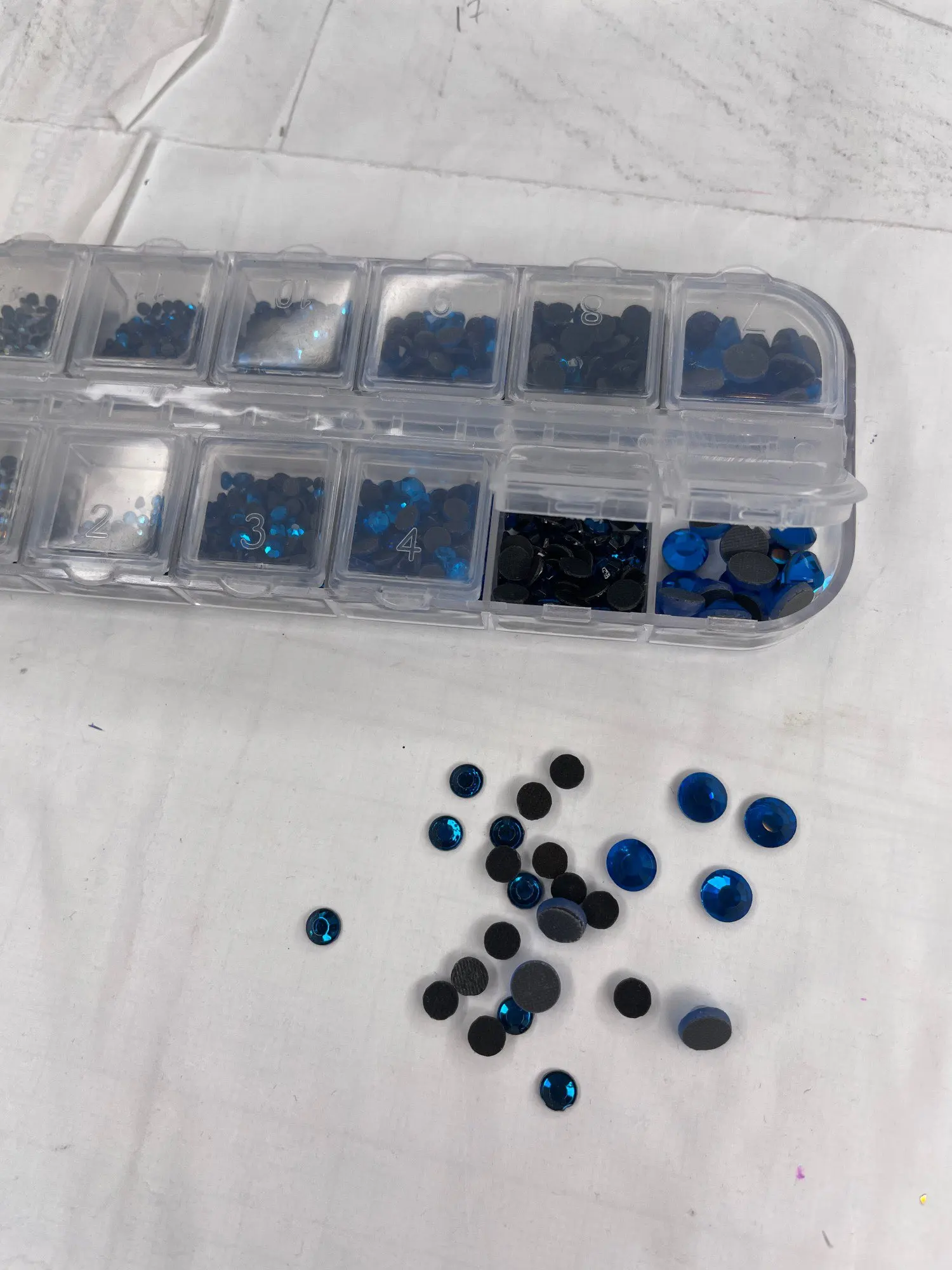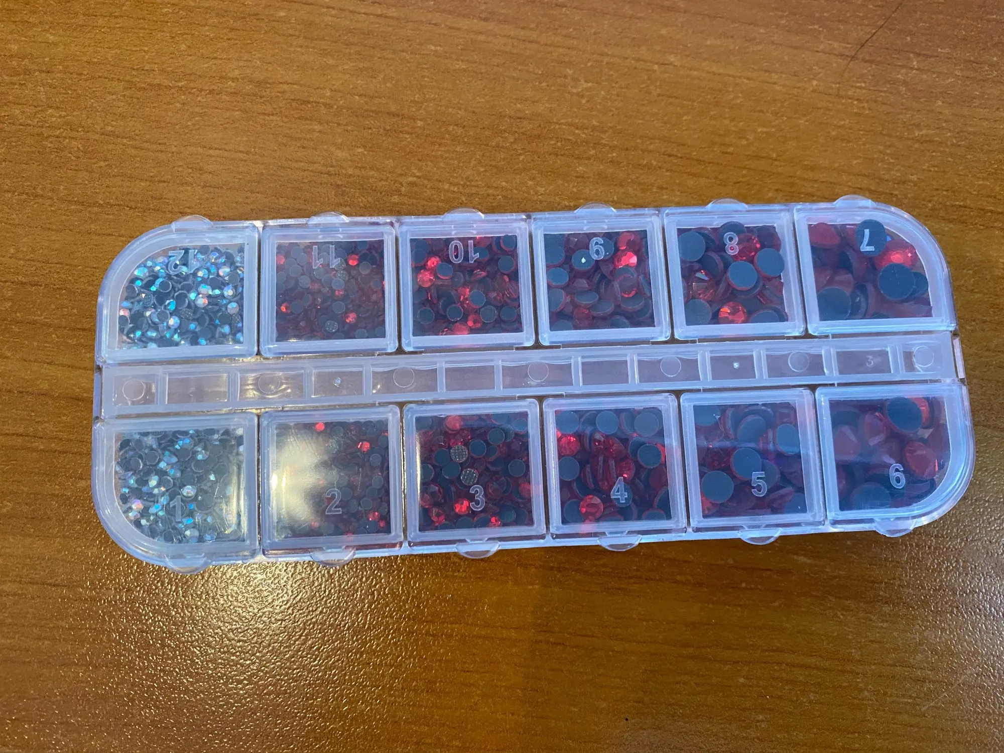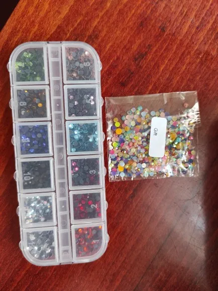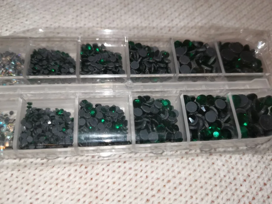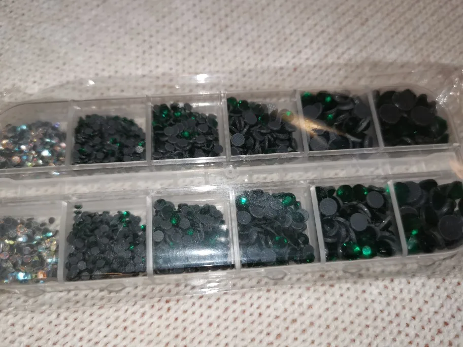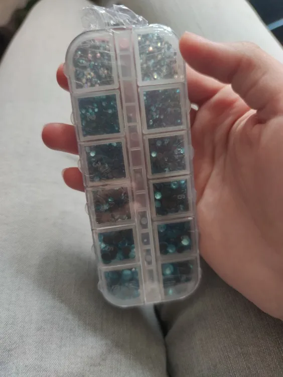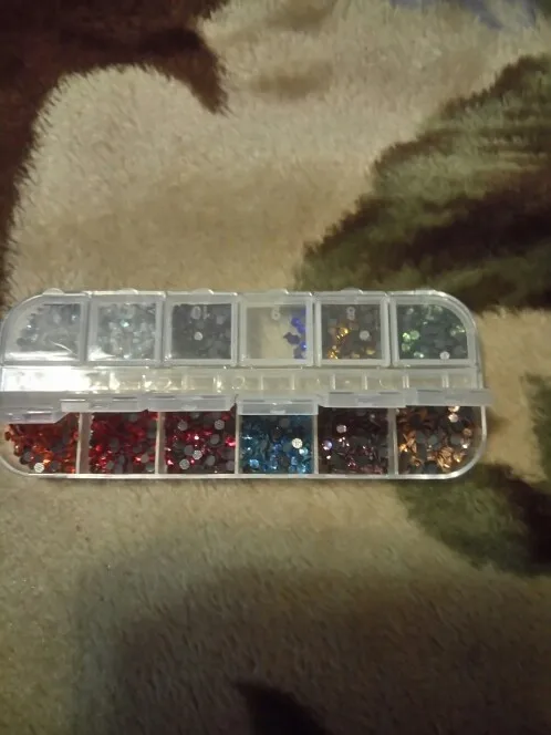 отличные стразы...очень удобно разложены по отдельным ячейкам..раньше покупала розсепью, приходилось по долгу сортировать...хочю ещё купить других цветов..блестят хорошо, уже клеила..хорошо держаться...советую...
