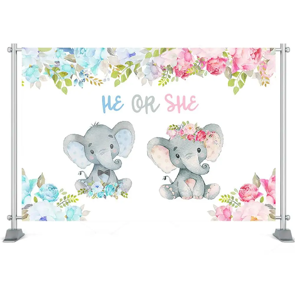 Фон для фотографирования с изображением слона HeShe или пола, голубой или розовый цветок, баннер для вечеринки в честь рождения ребенка, слон для мальчиков и девочек, декор для вечеринки