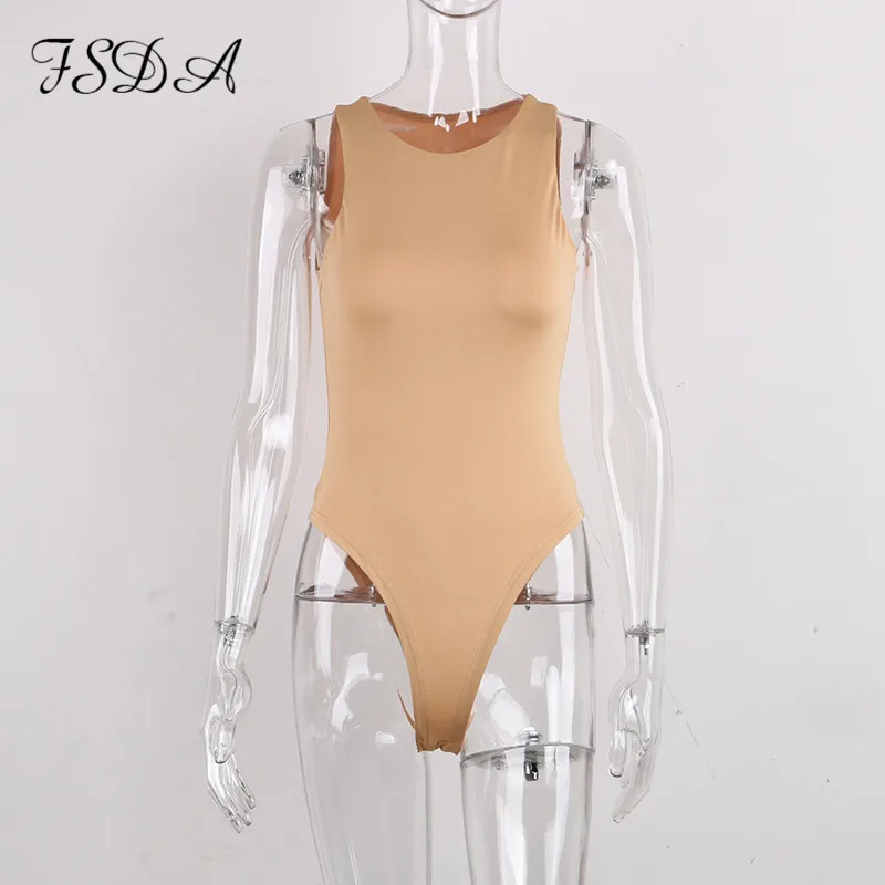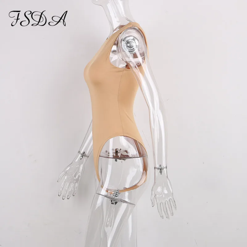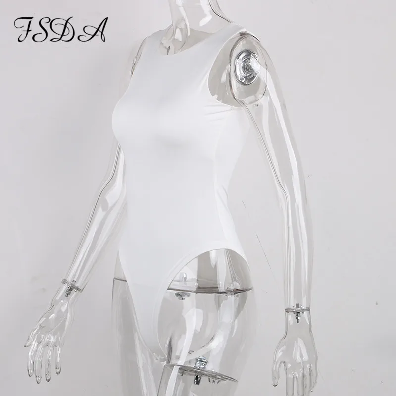 Женское боди с открытыми плечами FSDA, белое боди без рукавов, с круглым вырезом, на лето, 2020