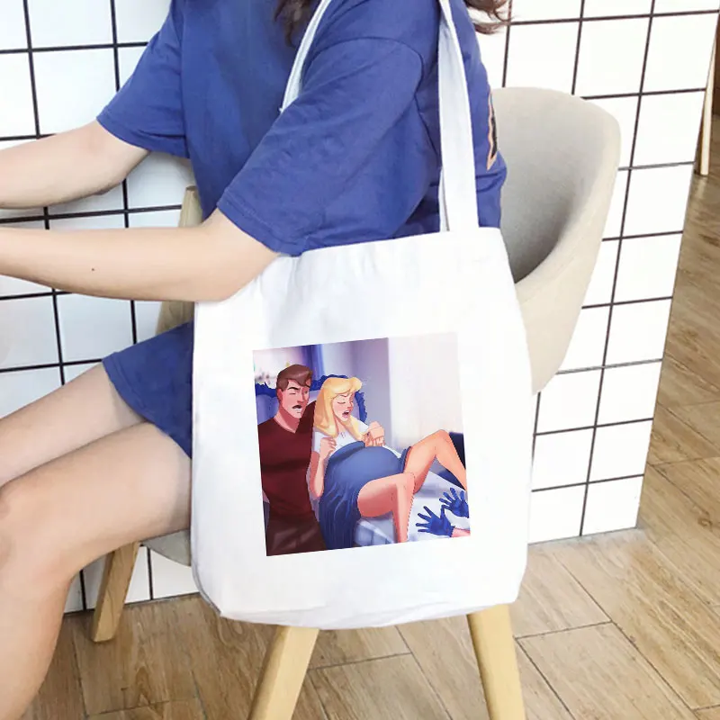 Холщовые сумки через плечо Kawaii С мультяшным принтом принцессы, л...