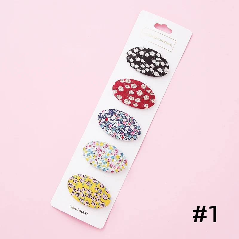 Заколка для волос хлопковая овальная, цветочные зажимы для волос, 5 шт.