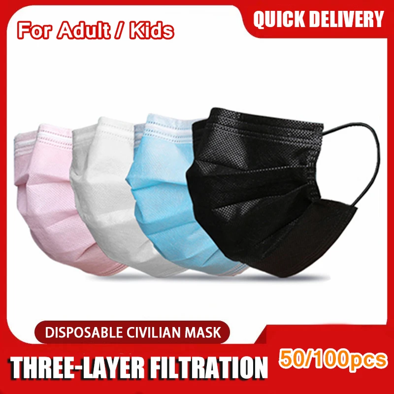 Одноразовые маски для взрослых и детей, противопыльная маска для лица, 3-слойная защитная дышащая защитная маска с фильтром 50100 шт.
