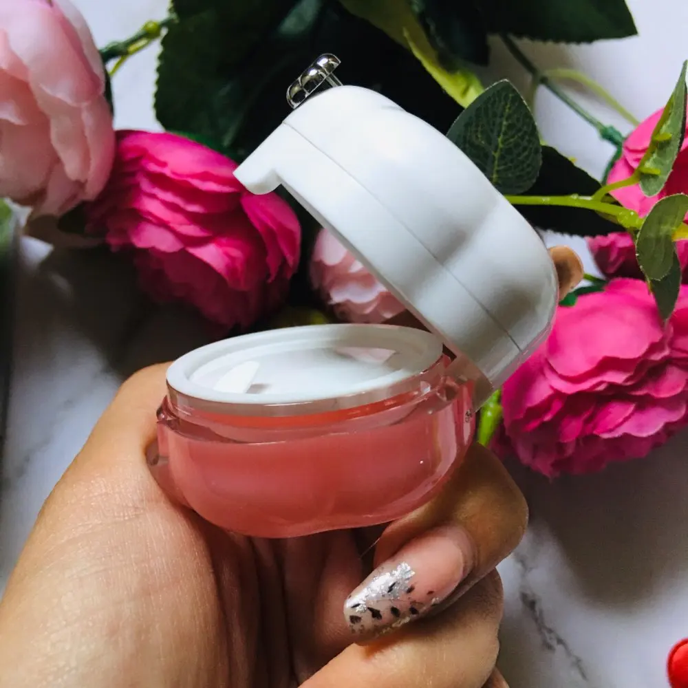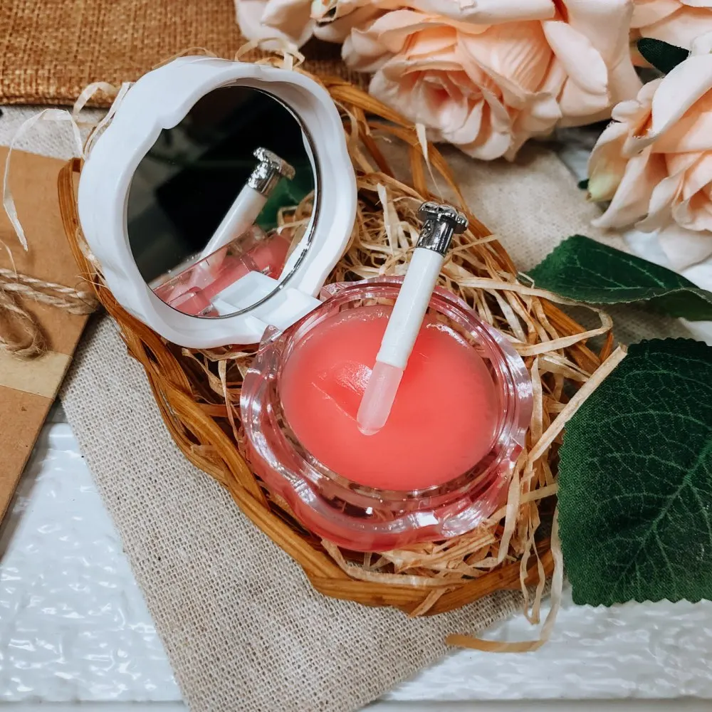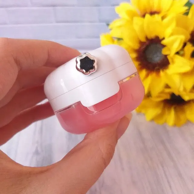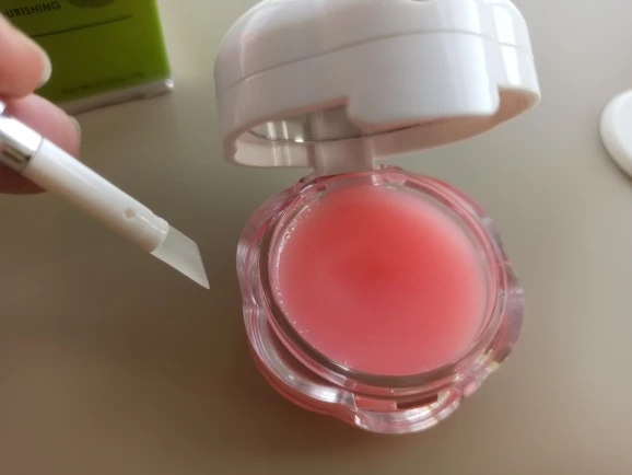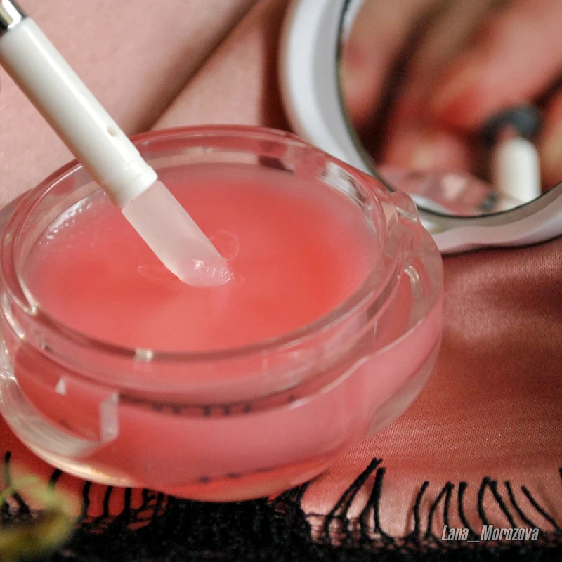 Упаковано в картонную коробочку, обёрнутую в слюду. На баночке находится серебристая кнопочка, это кисточка для нанесения бальзама на губы,,ее нужно потянуть на себя, чтобы вытащить. Ручка сделала из пластика, а сама кисть силиконовая. Сама маска обладает приятным вкусом и запахом. Губы после применения становятся мягкими, трещинки заглаживаются, а заеды проходят. Можно использовать как блеск, на губах остаётся розовый оттенок. Мне очень понравилась, и сама маска и как выполнен её дизайн. Рекомендую товар и продавца!)