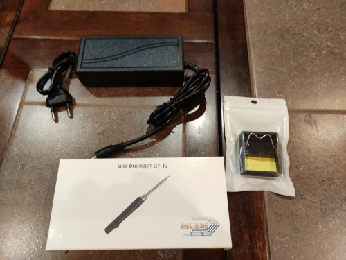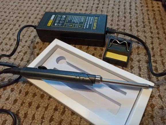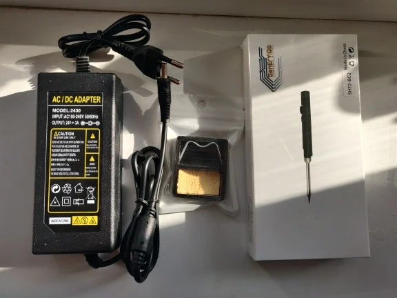 Паяльник дошел за 10 дней, даже с учетом, что заказывал 11.11. Полностью доволен, качество на высоте, по фото кажется что паяльник максимально уродлив и из дешёвого пластика, но на деле очень даже не плохо. Конструкция подогнана хорошо, в руке ощущается цельно, без люфтов и противных звуков. По поводу бп, есть защита от КЗ, на выходе 23.9V, но сам из себя он ничего не представляет, провод жёсткий имешает паяльнику нормально лежать. Вообще комплектный блок питания из себя ничего не представляет, манструозная конструкция с небольшой полезностью. Жало хорошее, но рабочая поверхность только 10мм, для меня маловато.