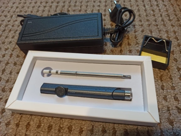 Паяльник приятно - неожиданно маленький. В руке лежит очень удобно. Нагрев за секунды. Доволен как слон! У блока питания короткие провода, надо будет как то нарастить, но корпус у него кажется неразборный(клеенный). К покупке рекомендую!