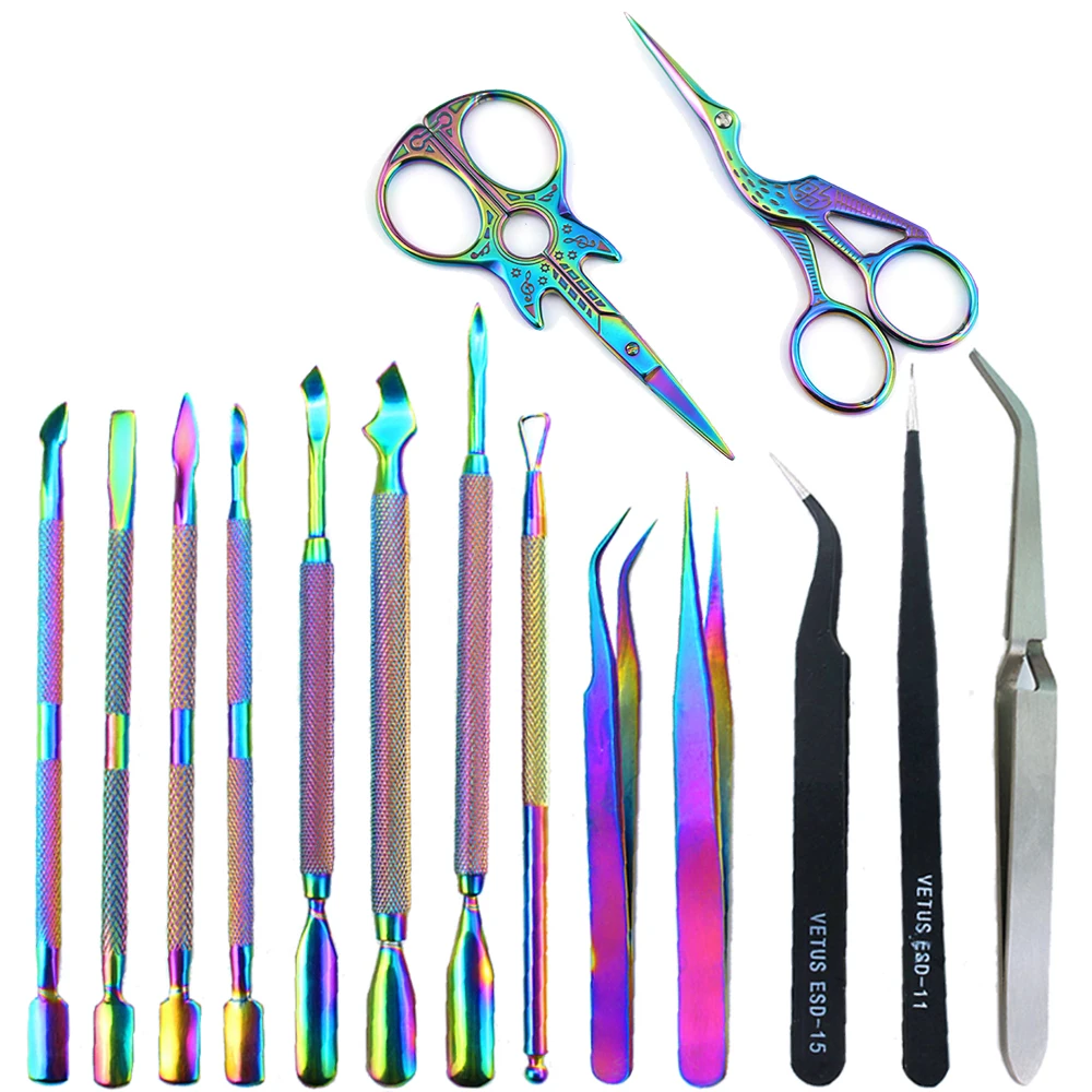Ножницы для удаления кутикулы из нержавеющей стали, радужные пинцет...