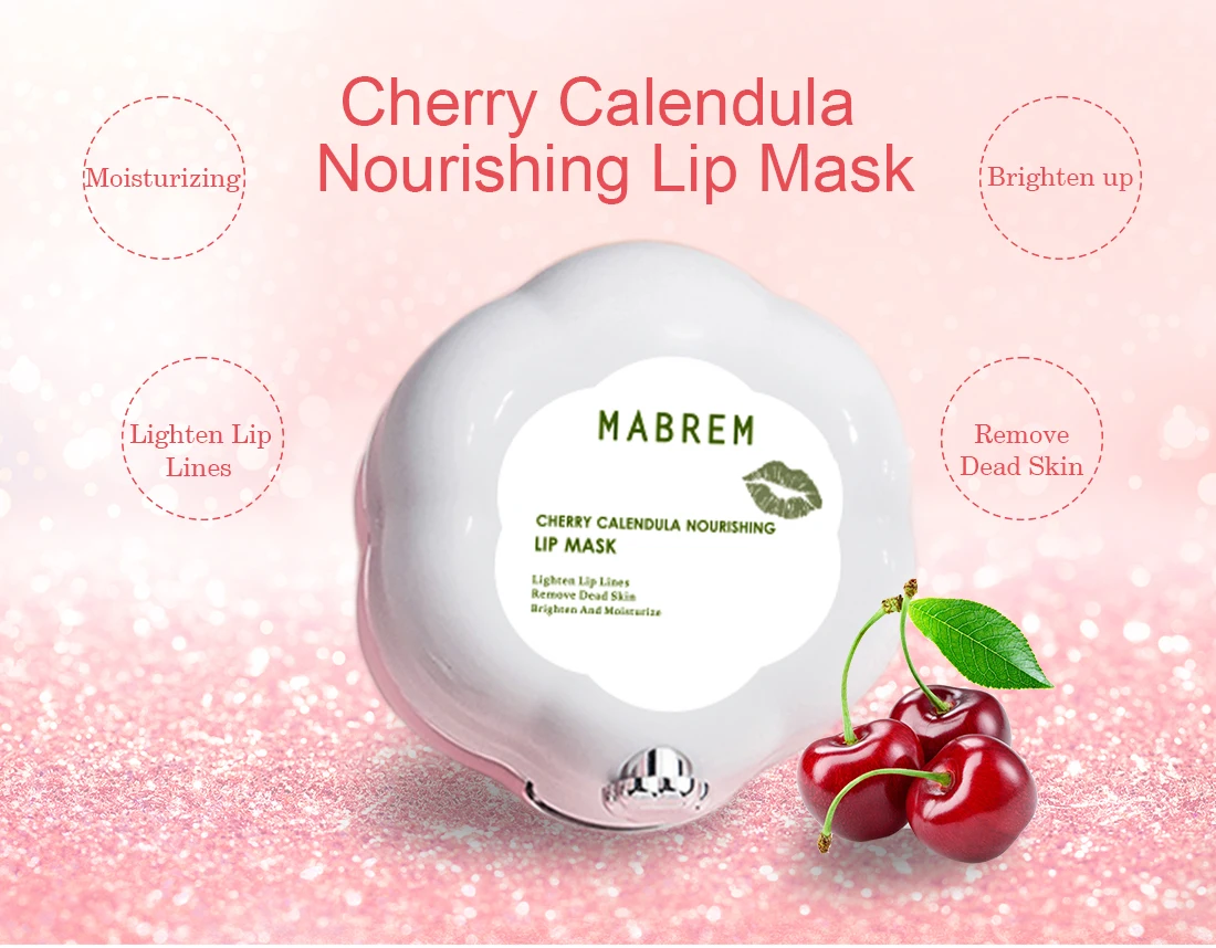 Питательная маска для губ вишневого календулы осветляет линии губ, удаляет омертвевшую кожу, осветляет и увлажняет, аккуратно удаляет омертвевшую кожу.