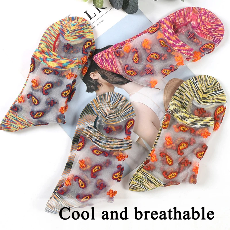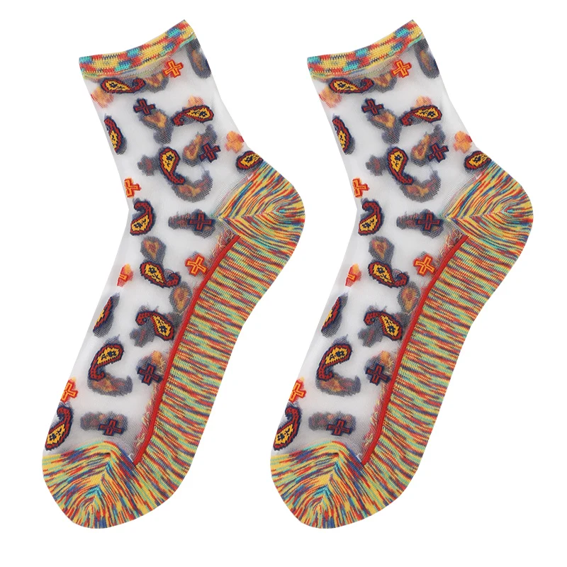 Женские тонкие дышащие хлопковые носки 4 цветов в национальном стиле