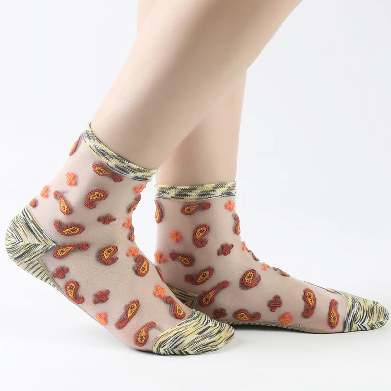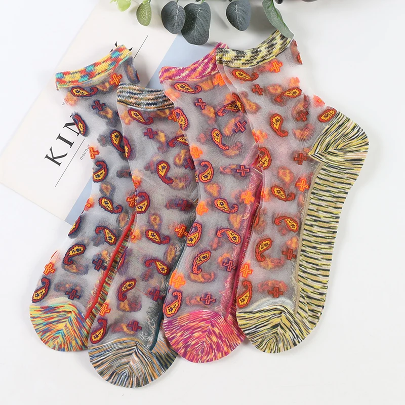 4 пар/упак. женские тонкие цветы, носок, Женский Национальный стиль