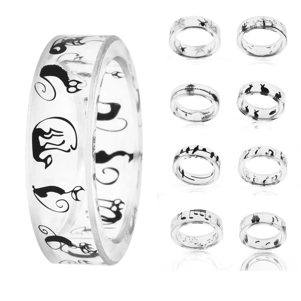 Кольцо из прозрачной смолы ручной работы, модное кольцо с музыкальным пейзажем внутри эпоксидной смолы, кролик, собака, летучая мышь, кошка, замок, кольца для мужчин и женщин подарок, 2020