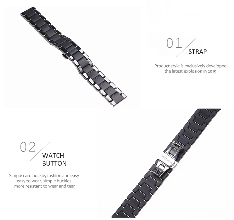 Ремешок изготовлен из керамики и нержавеющей стали. -Быстросъемный дизайн: высококачественная керамическая лента для часов с быстросъемным дизайном, элегантная, Модная и удобная в носке. С быстроразъемным пружинным стержнем просто установите и отсоедините ленту вручную, никаких инструментов не требуется; 3 Быстросъемных контакта в комплекте (2 для прямого использования и 1 для запасных частей). -Регулируемая длина: все керамические звенья снимаются, очень легко снимаются, чтобы изменить размер длины ремешка, чтобы идеально подогнать запястье. В комплект входит инструмент для удаления звеньев. Подходит для всех запястья меньше, чем 8,6 "(220 мм). Длина ремешка: 6,7 "(170 мм) длина браслета может быть увеличена до удовлетворения (в виде большой руки, запястья) потребителей, толщина: 3,8 мм, Вес: около 2,8 oz. Нажмите на изображение для просмотра в полный размер (80 г). -Серебристая застежка-бабочка из нержавеющей стали: Высококачественная застежка-бабочка из нержавеющей стали с двойной кнопкой позволяет быстро снять и снять ремешок. Застежка/пряжка с двумя кнопками обеспечивает безопасность Ваших часов и с помощью «клика» быстро отпустите и закройте.