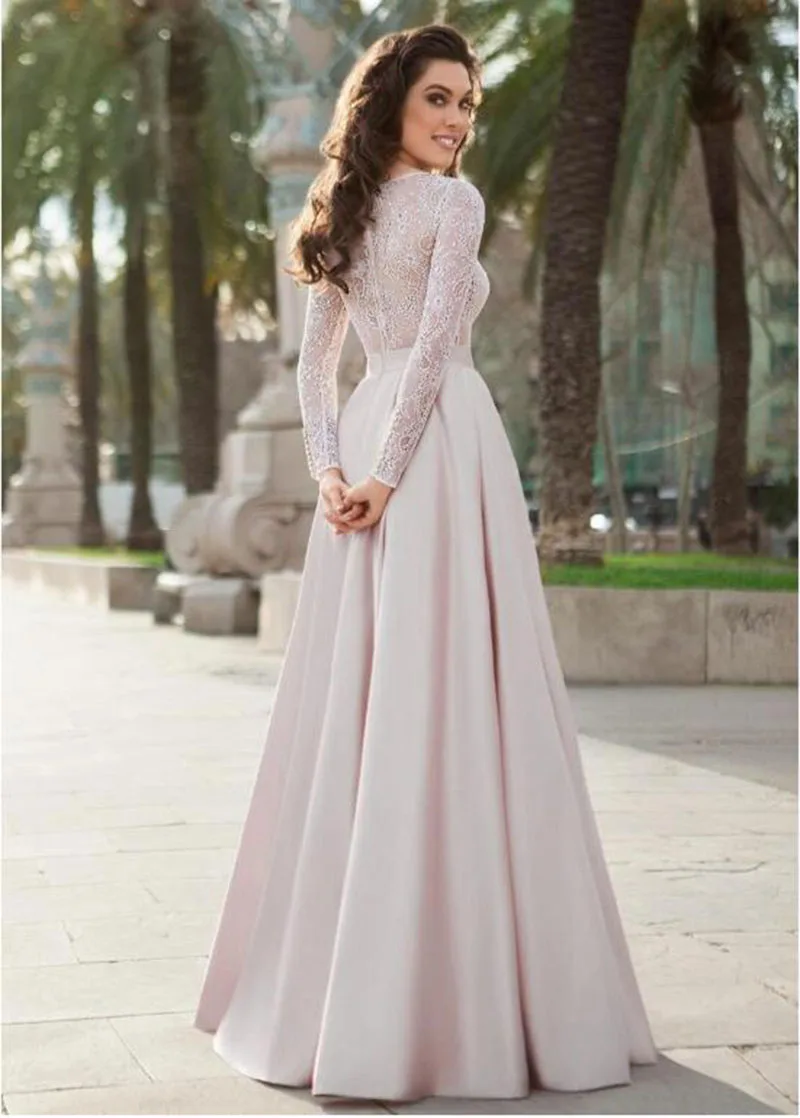 Кружевное бальное платье с длинными рукавами и открытой спиной