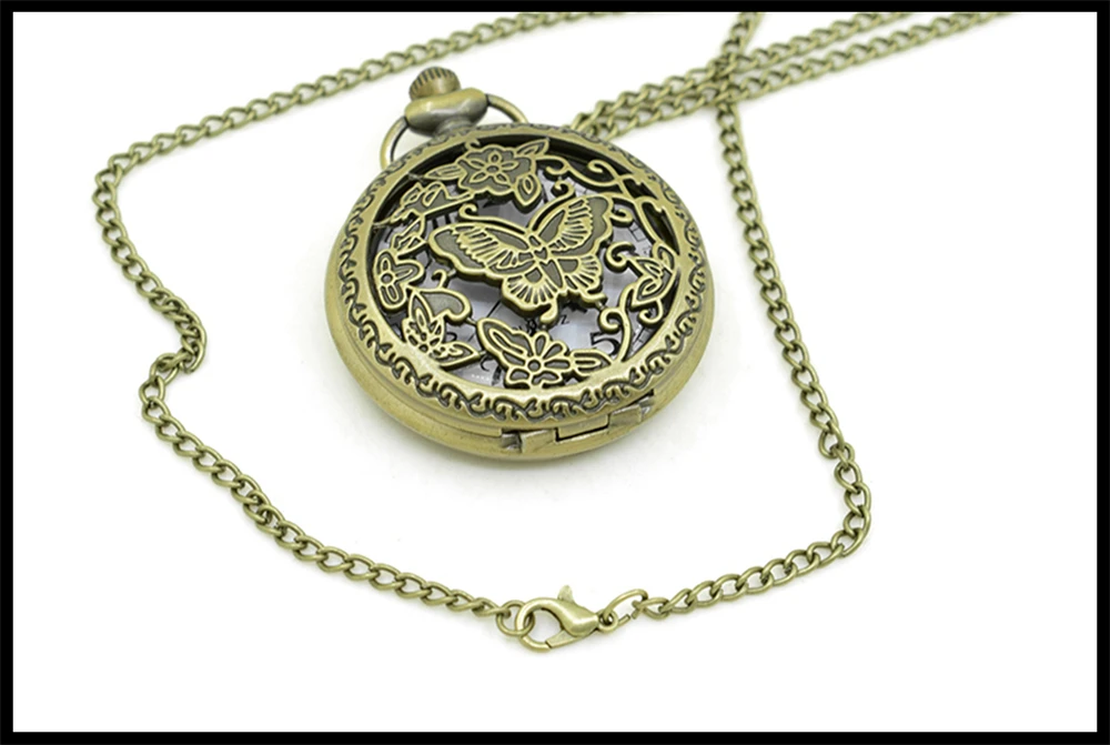 Женские карманные часы с бабочкой, винтажные женские часы в стиле ретро с цветами, карманные часы с тиснением, круглым кварцевым циферблатом, арабские часы с цепочкой