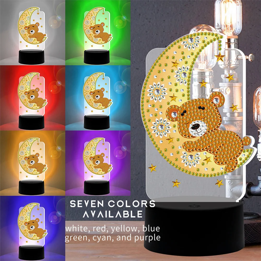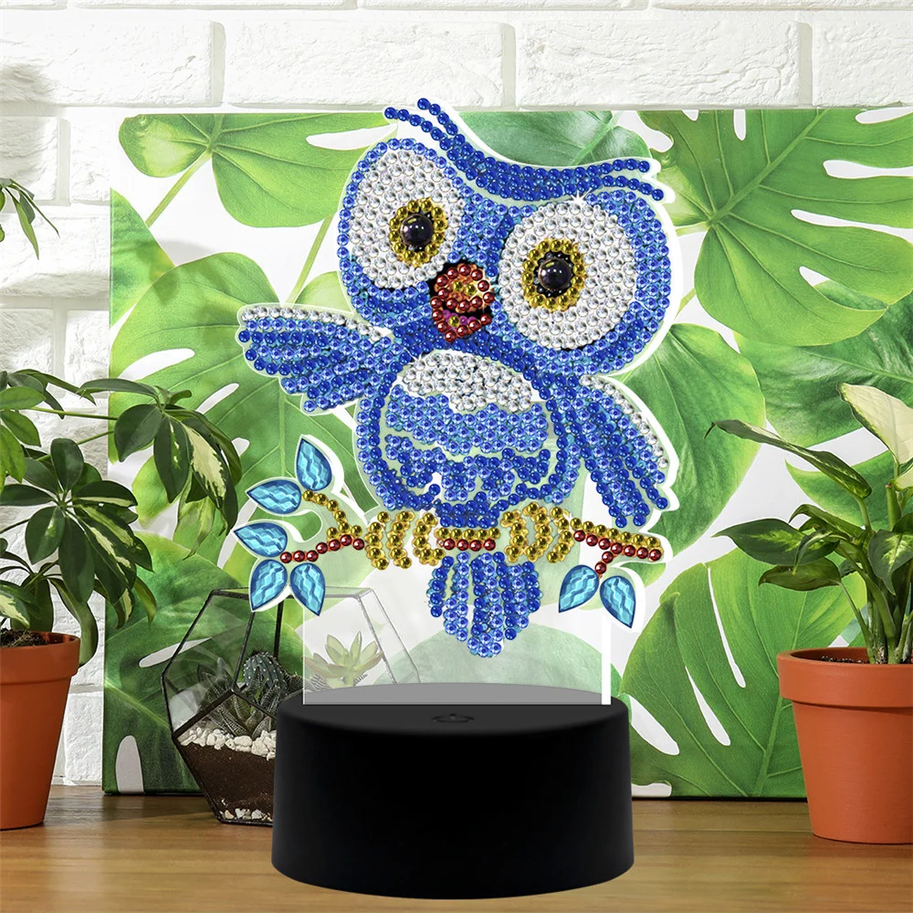 HUACAN светодиодный светильник, алмазная живопись, 5D светильник, алмазная вышивка, Сова, медведь, мозаика, мультфильм, домашний декор, подарок
