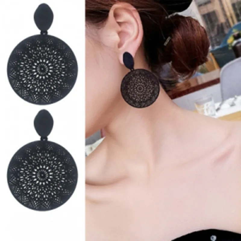 Очаровательные серьги модные новые темпераментные полые узоры ретро черный дворец крупные черные круглые женские серьги оптовая продажа