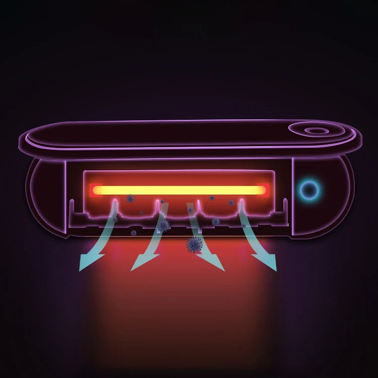 2. Использование 253,7 коротковолновой UVC радиации для уничтожения бактерий, скорость стерилизации до 99.99% и быстрое высыхание, чтобы предотвратить рост бактерий