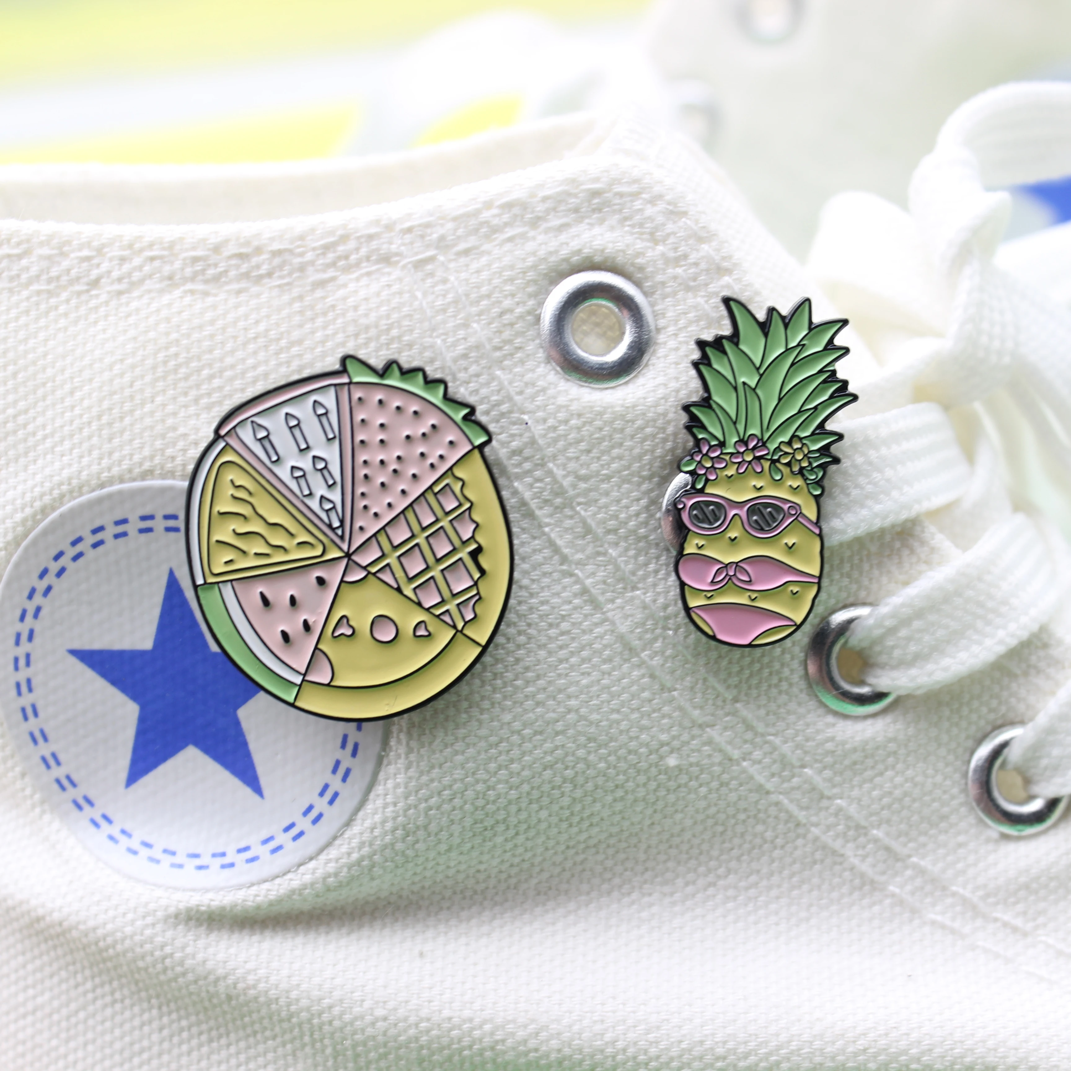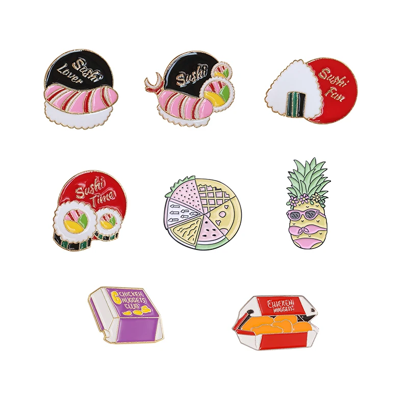 Эмалированная булавка для фруктов, суши, рис и овощи, ролл, пицца, курица, веселье, булавка для лацкана, ананас, солнце, ванна на лето