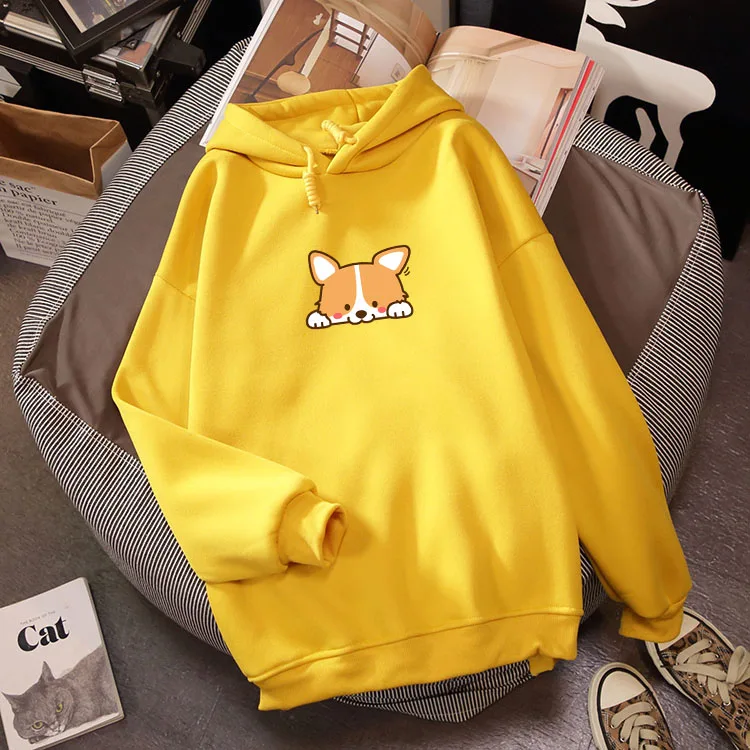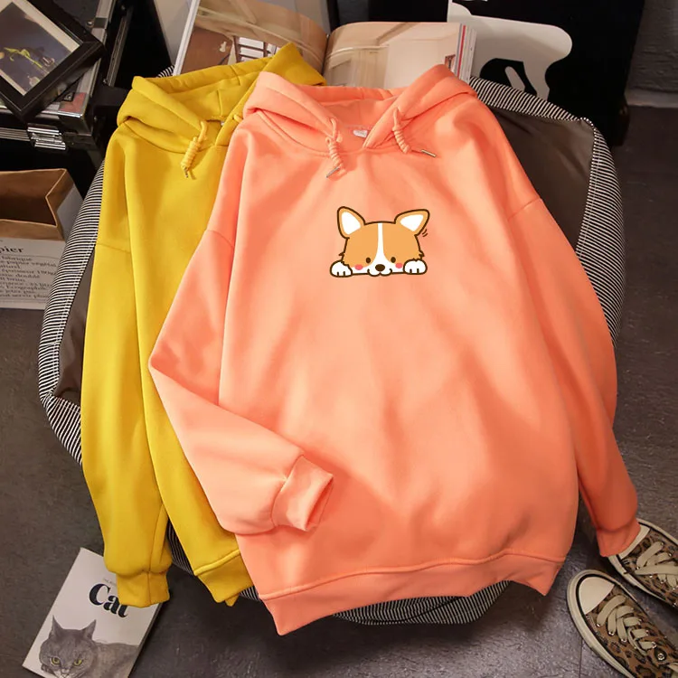 Толстовка Женская с длинным рукавом, милая уличная одежда в японском стиле Харадзюку, худи с принтом корги, свитшот, удобный пуловер на осень