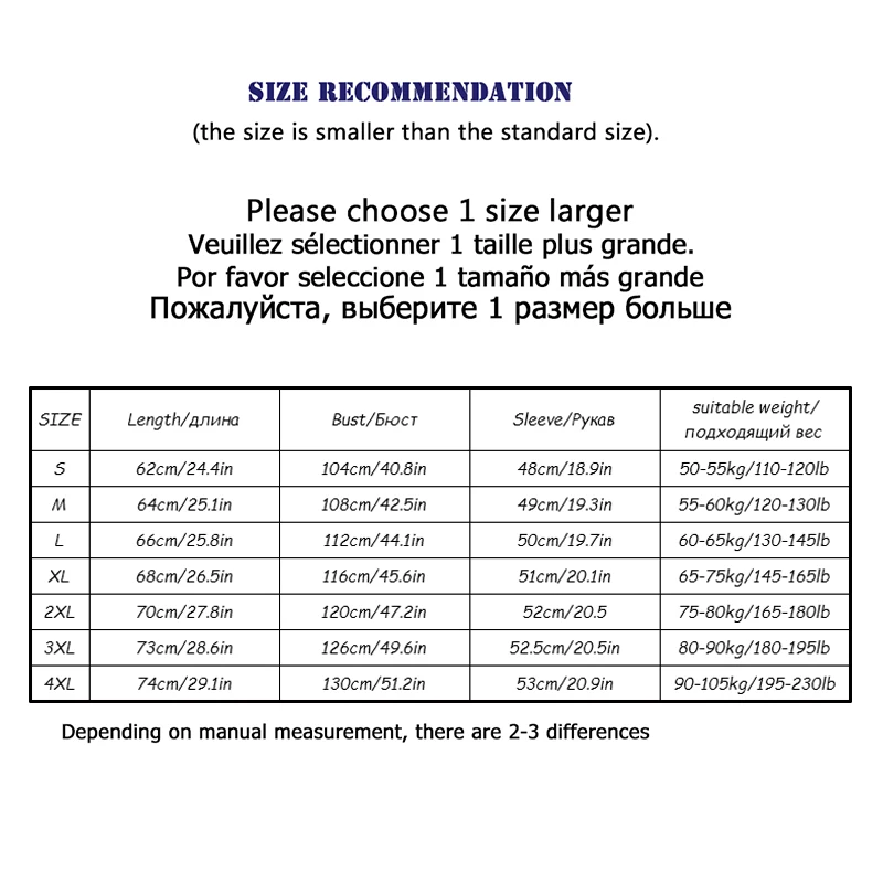 Если вам нравится свободная одежда, рекомендуем выбрать на 1 размер больше.