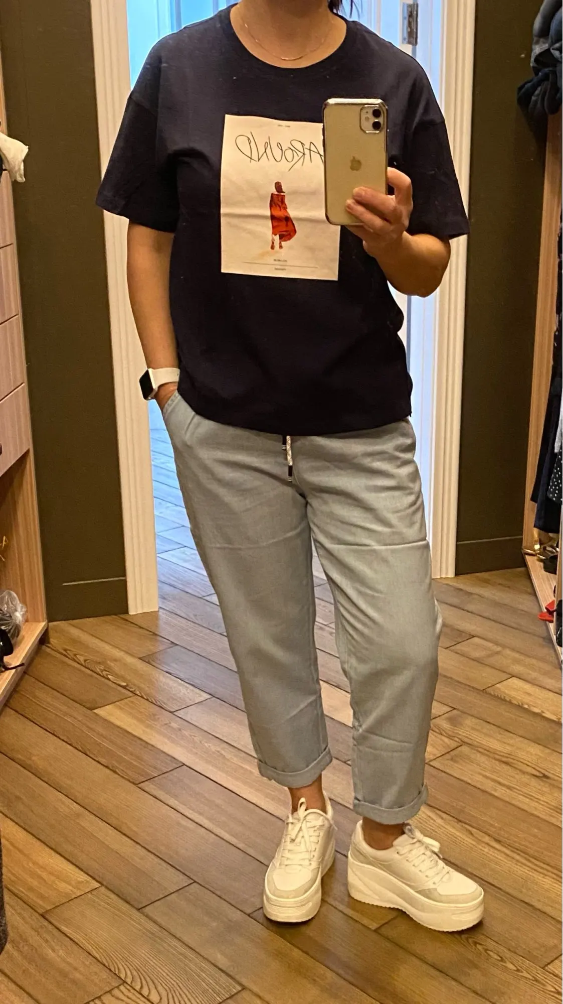 Очень понравилась футболка, стильно смотрится, качество хорошее, на мой 48 - L хорошо. Вот только чуть коротковата на мой рост 180, но с правильными джинсами все равно выглядит отлично. Заказала 6 декабря, получила 26 декабря, очень быстро, учитывая праздники.