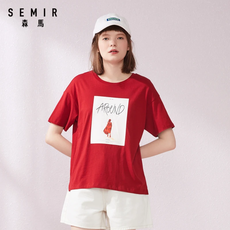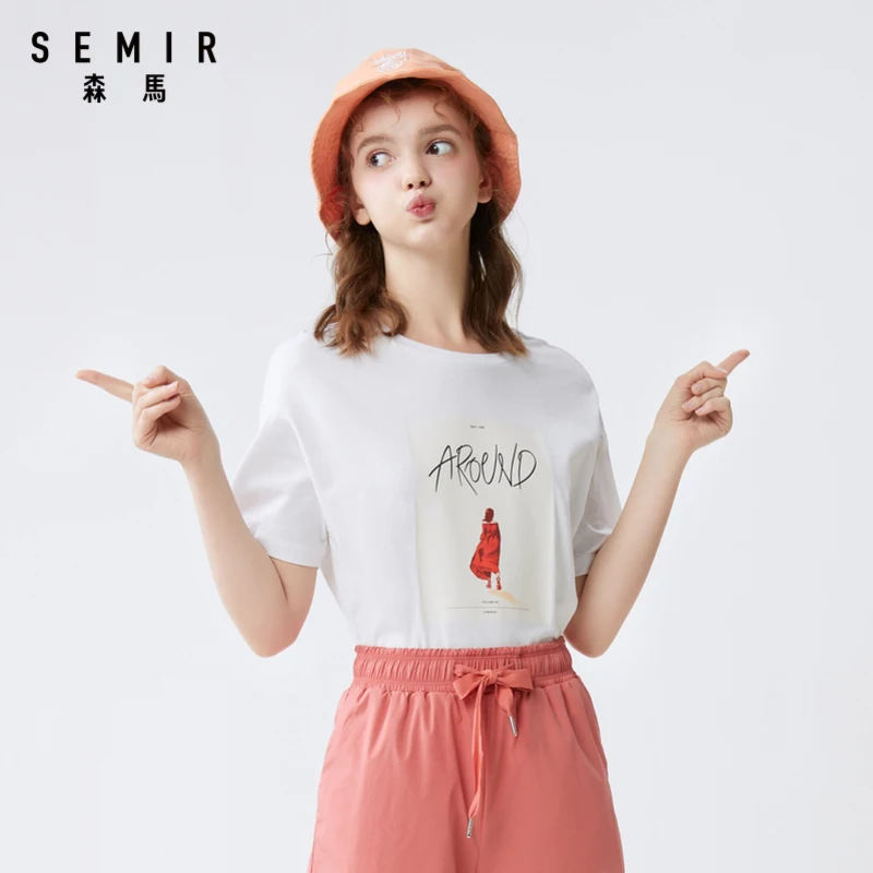 Футболка Semir Женская хлопковая с коротким рукавом, удобный топ с принтом портрета, лето 2019