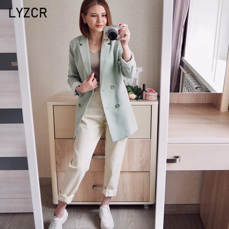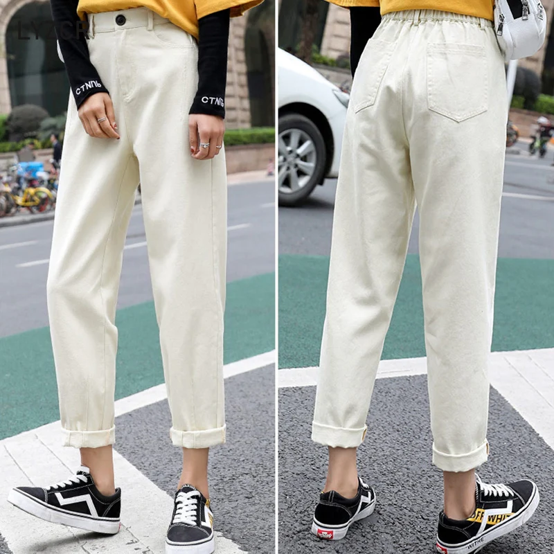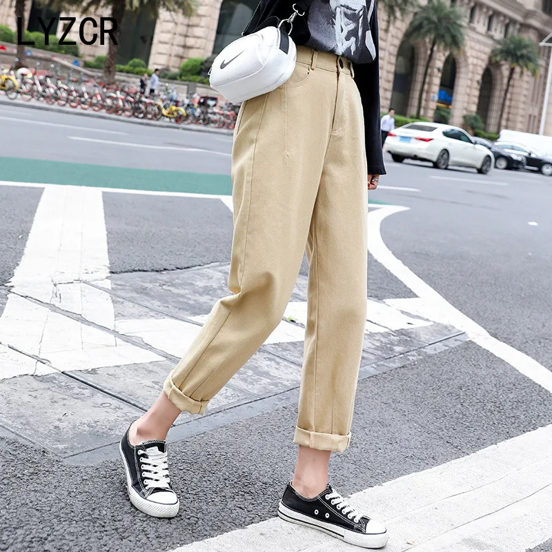 Женские джинсы до щиколотки LYZCR, свободные хлопковые джинсы цвета хаки, 2020