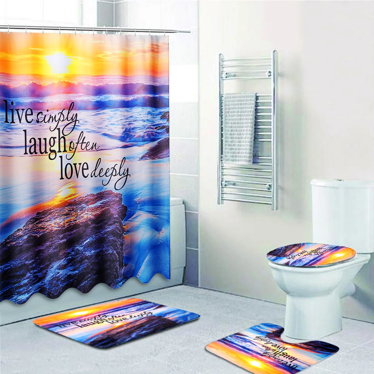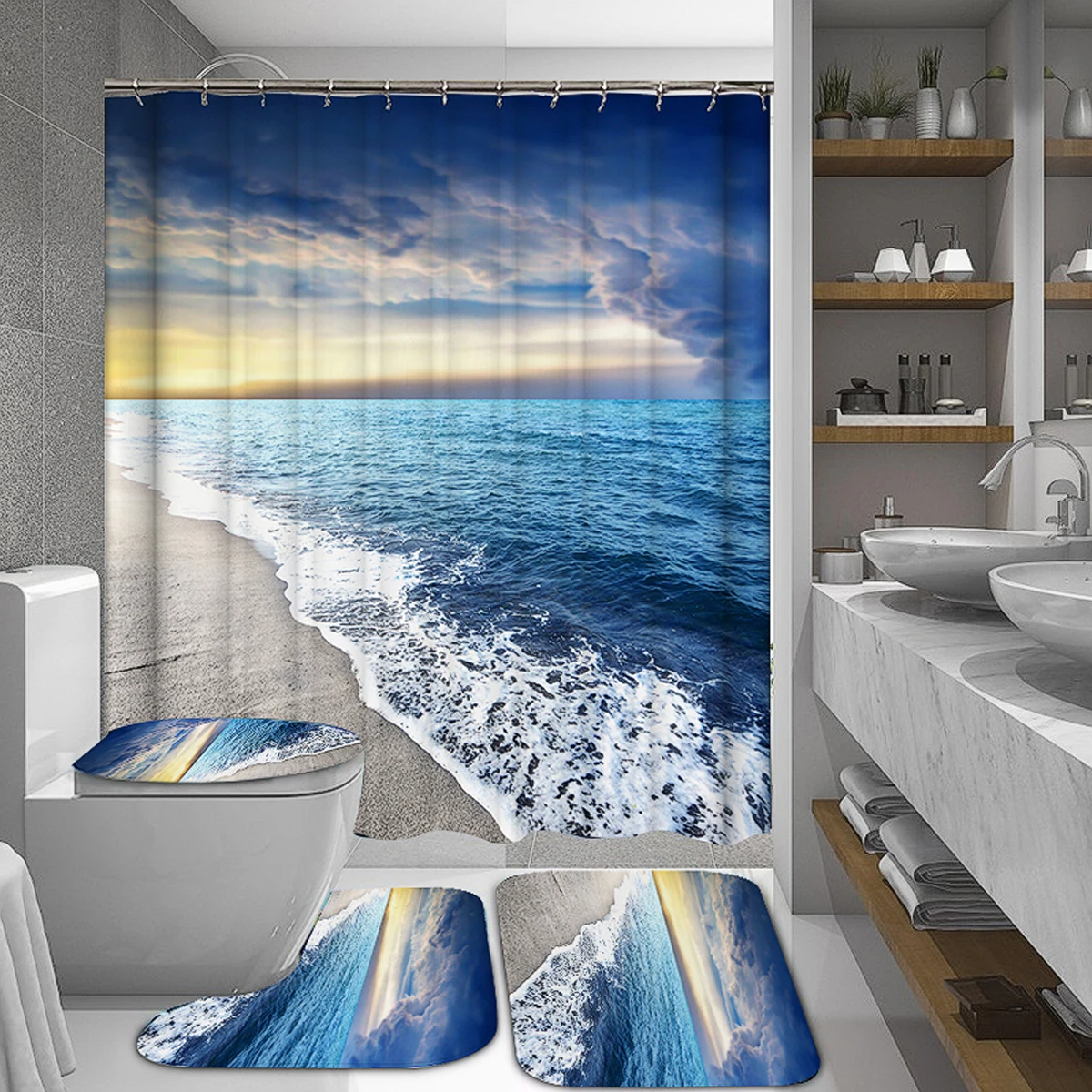 Водонепроницаемая шторка для душа с 3D принтом, прибрежный Пляжный Пейзаж, коврик для ванной комнаты с 12 крючками