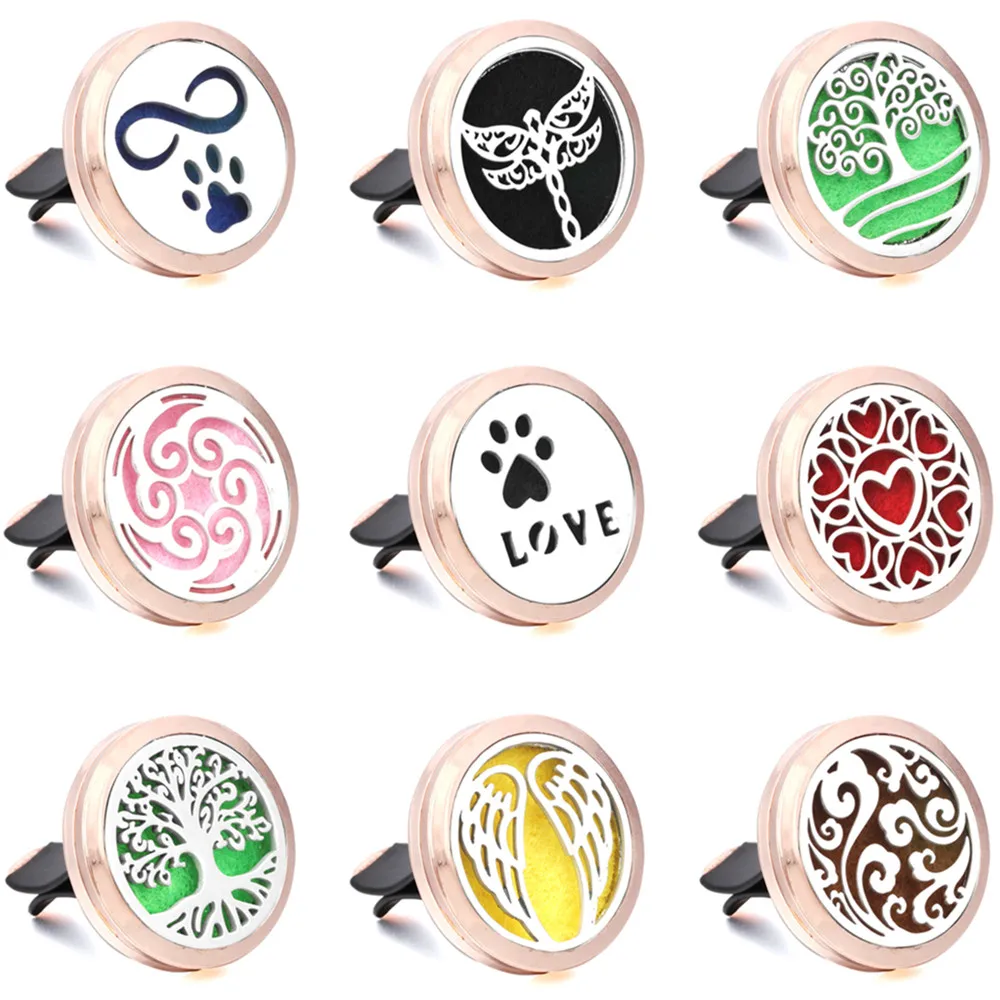 Новинка, розовое золото, ароматерапия, автомобильный парфюмерный диффузор 30 мм, магнитный аромат диффузор медальон, автомобильный освежитель воздуха, зажим для вентиляции + 1 шт.