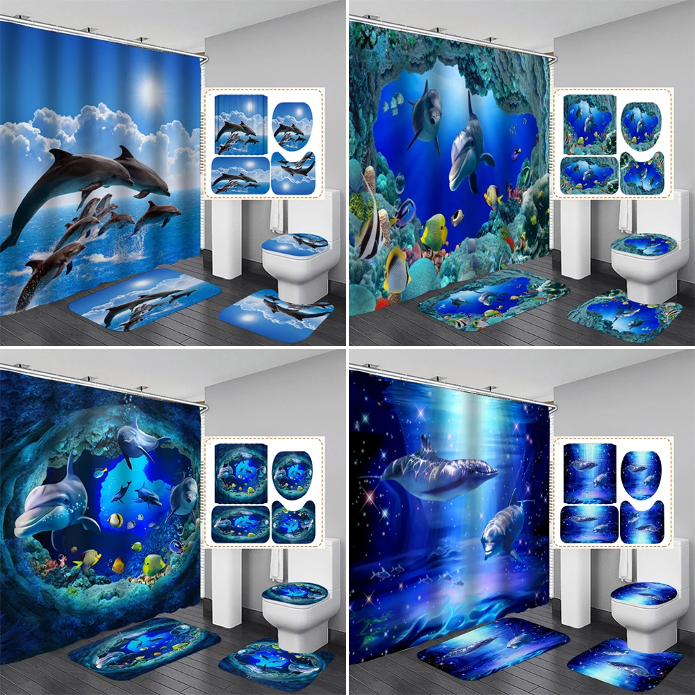 Водонепроницаемая тканевая занавеска для душа с 3D-принтом океан море Дельфин, набор для ванной комнаты, нескользящая коврики для туалета крышка, коврик для ванной комнаты