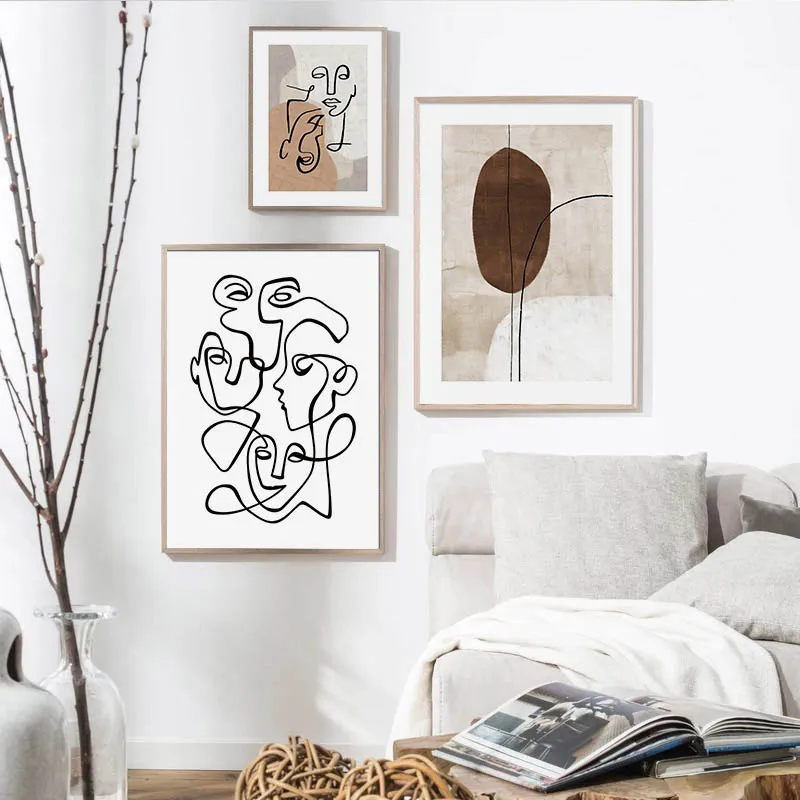 Настенный абстрактный плакат с изображением линий, цветов, листьев,...