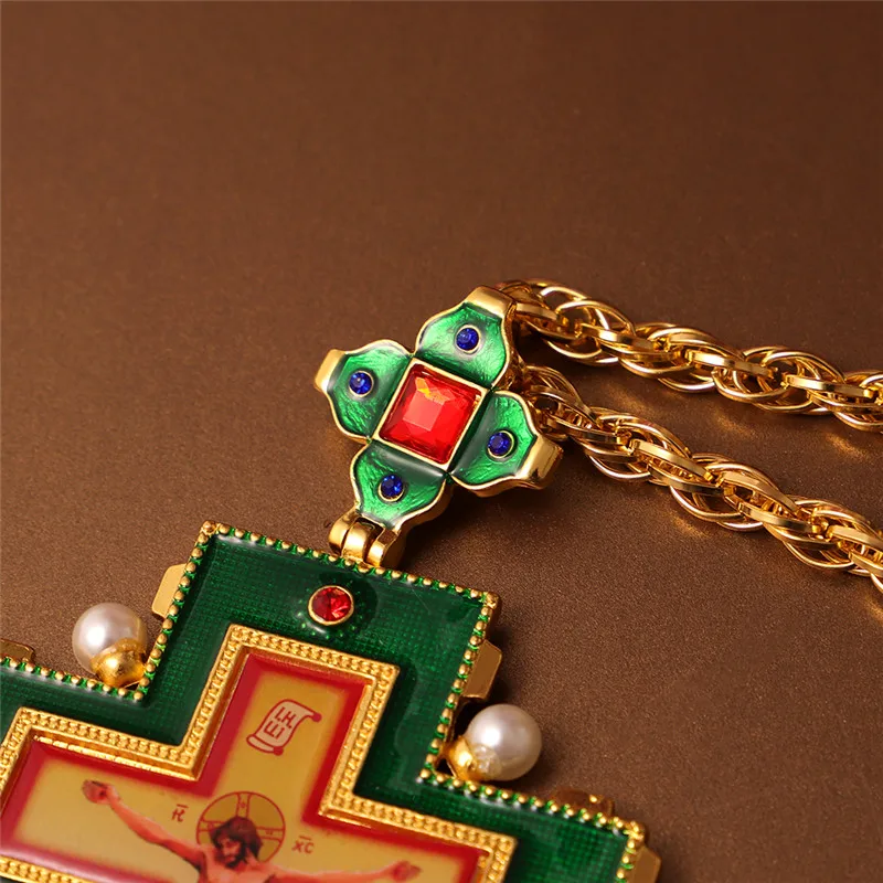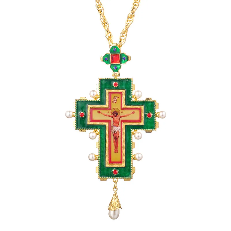 Зеленое эмалированное ожерелье с крестом папы Фрэнсиса, подвеска с распятием, женская бижутерия