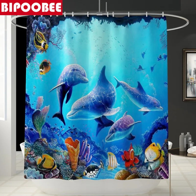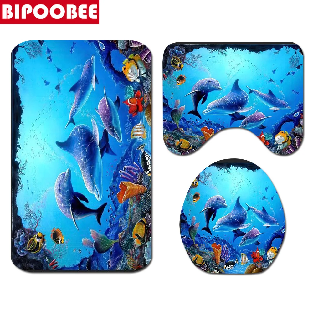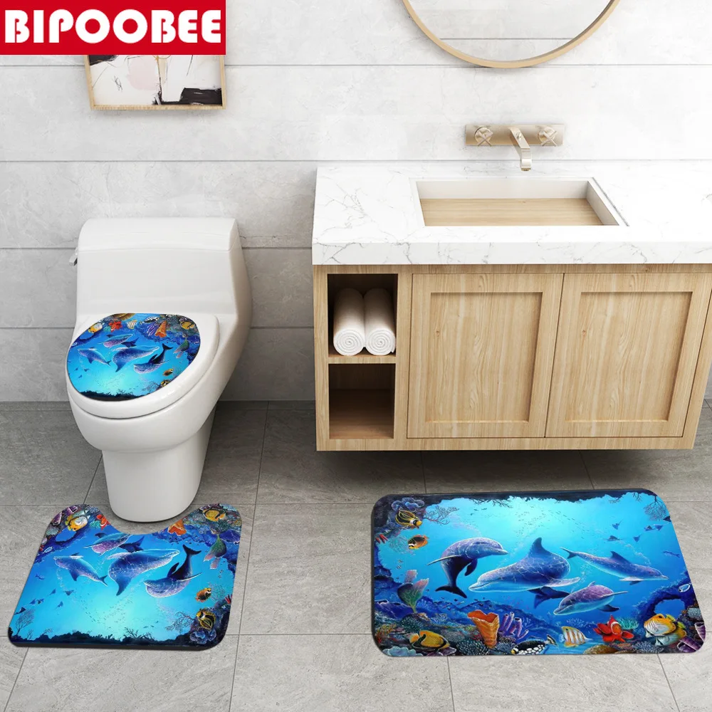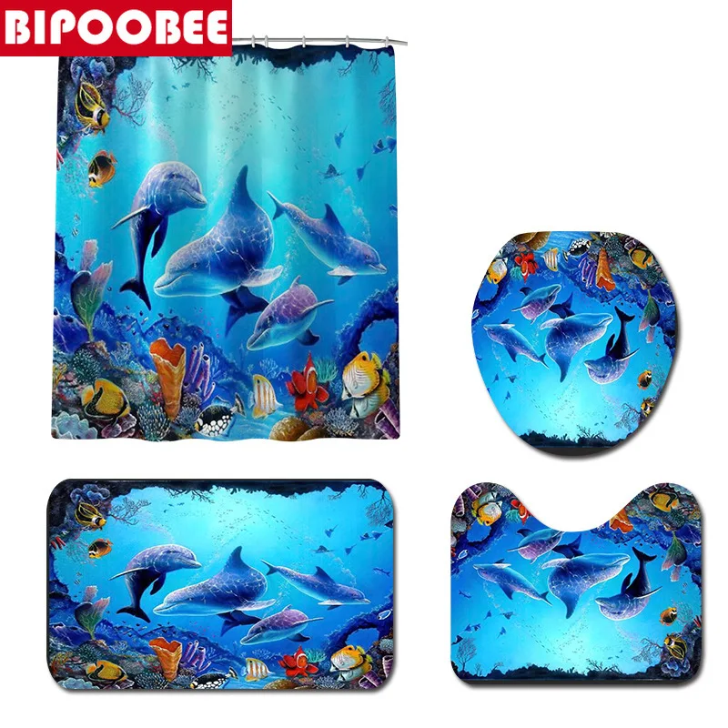 Водонепроницаемая душевая занавеска С 3D-принтом дельфина и морским подводным миром, с коврики для туалета крышкой, Коврик для ванны, украшение для ванной комнаты