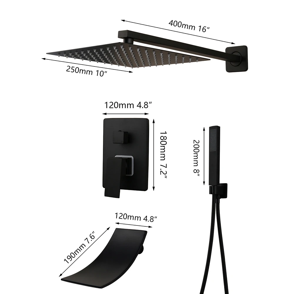 Torayvino 8 16 дюймов черный квадратный смеситель для душа комбини...