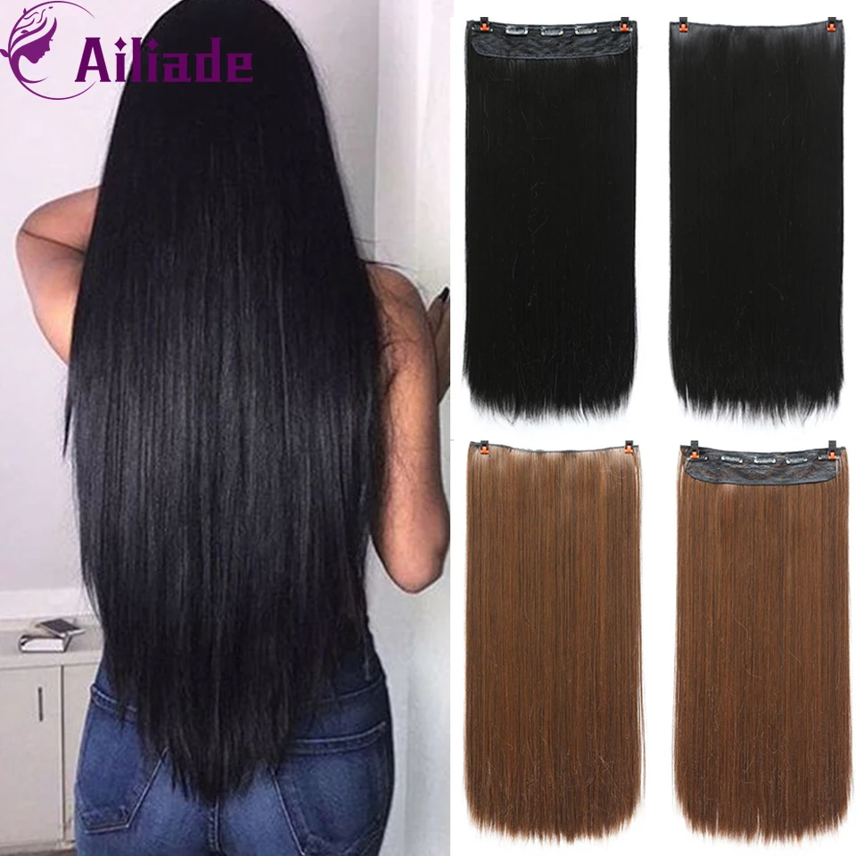AILIADE длинные Натуральные Прямые накладные волосы на клипсах, синтетические волосы, термостойкие черсветильник-коричневые прически для женщин