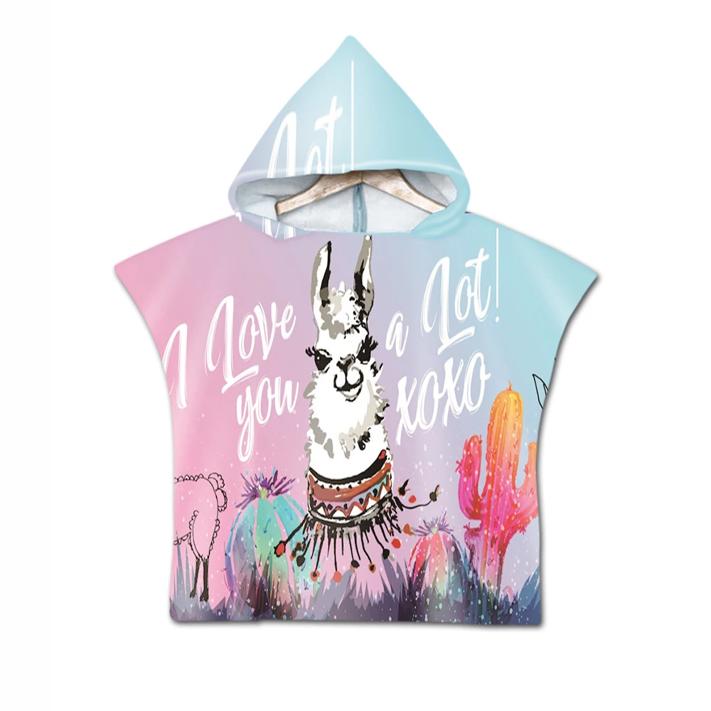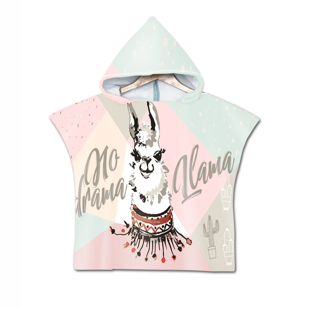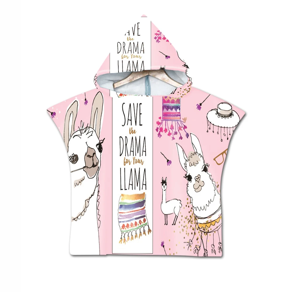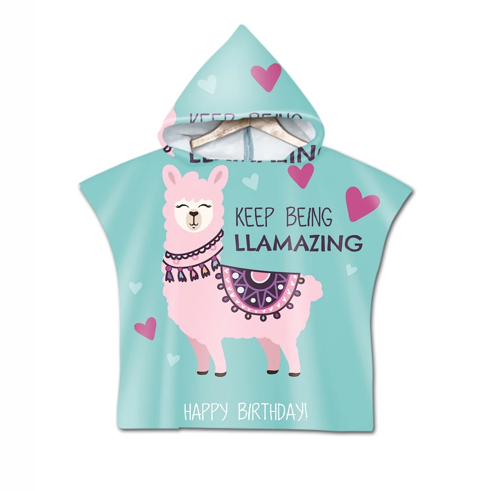 Новинка, детская накидка с капюшоном и милыми мультяшными ламами, пляжное полотенце с принтом альпака, детское банное полотенце из микрофибры для купания мальчиков и девочек