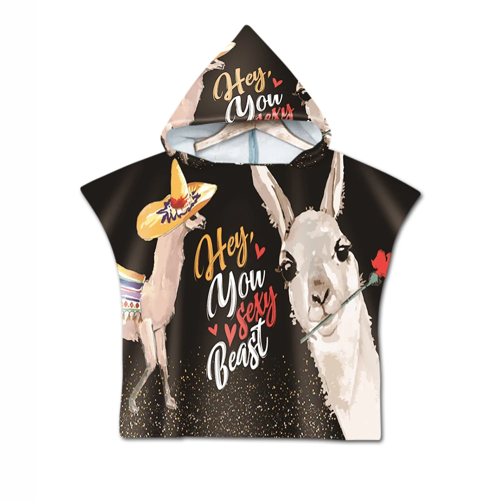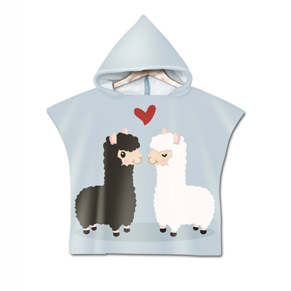 Новый детский плащ с капюшоном с изображением ламы, пляжное полотенце из микрофибры с принтом альпаки для маленьких мальчиков и девочек, детское купальное полотенце