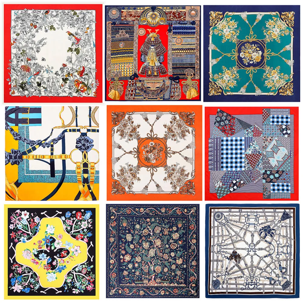 Высокое качество Шелковая Косынка повязка на голову женская Элитный бренд шарф с цветочным принтом шаль Пашмина саржевого печати большие шелковые шарфы 130*130 см