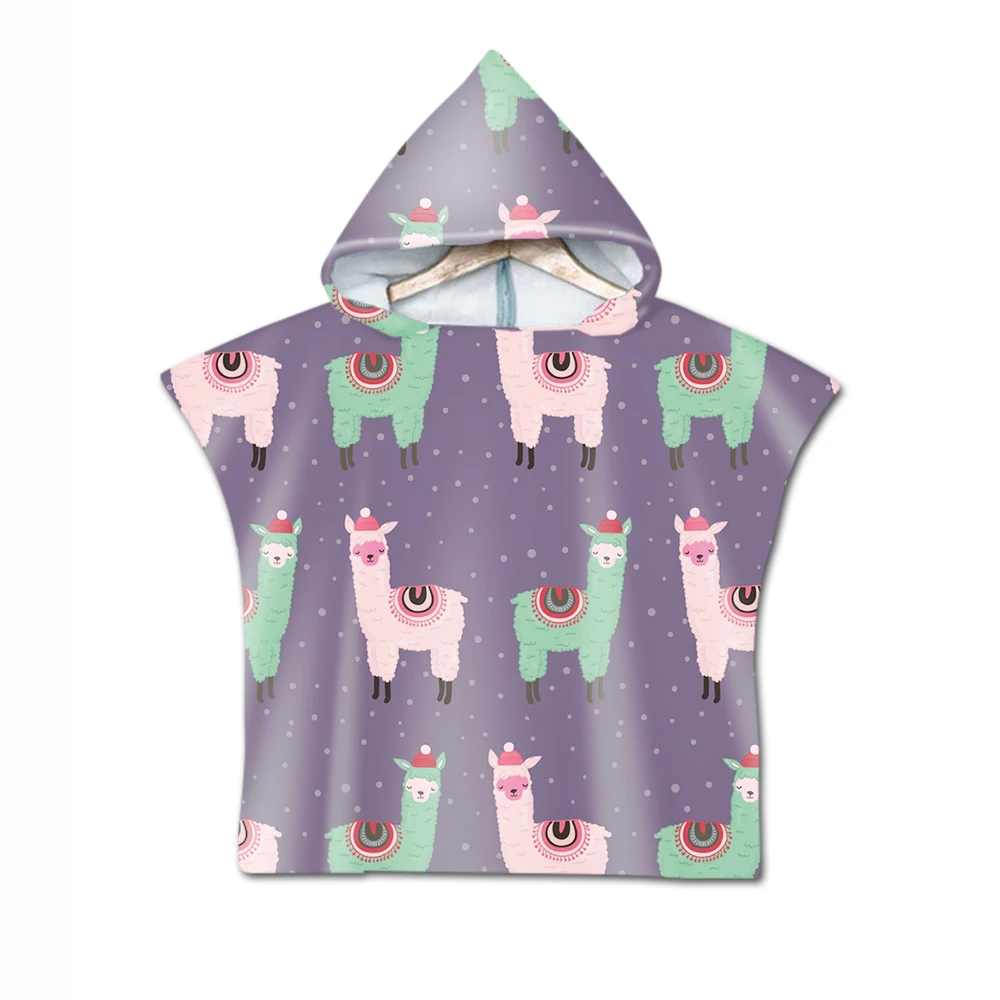 Детская накидка с капюшоном и мультяшными ламами, пляжное полотенце из микрофибры с принтом альпака, для маленьких мальчиков и девочек, банное полотенце для купания