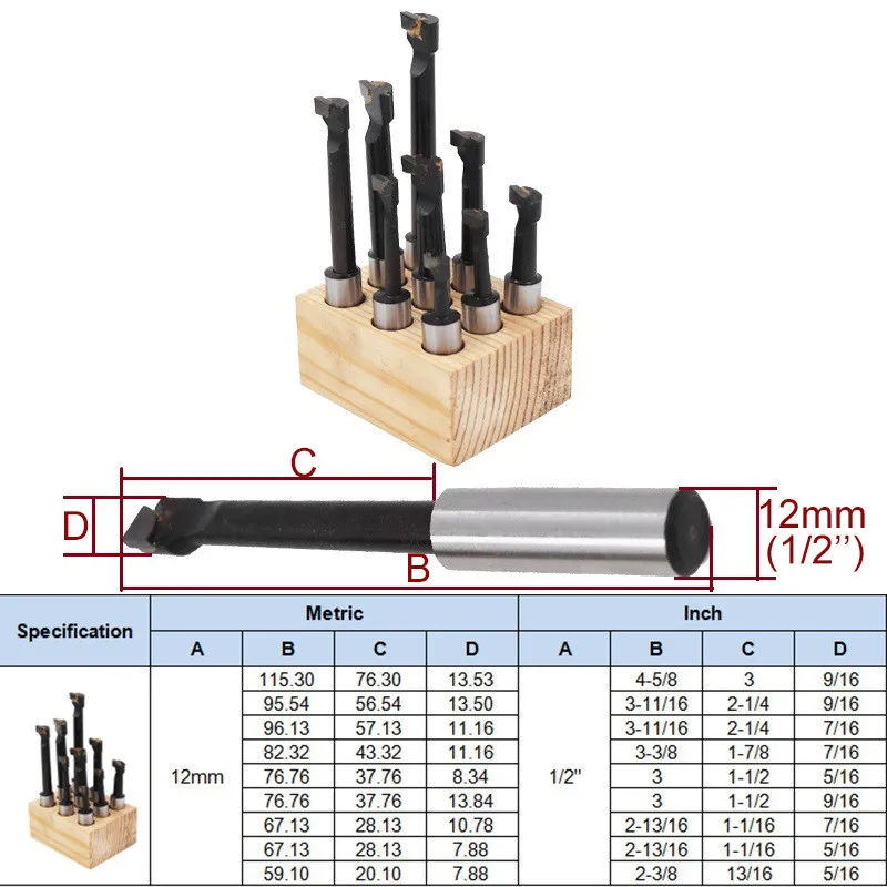 12 ''9 шт Жесткий сплав хвостовик расточной бар расточной резак набор Карбид наконечники для 2 дюймов 50 мм расточной головки