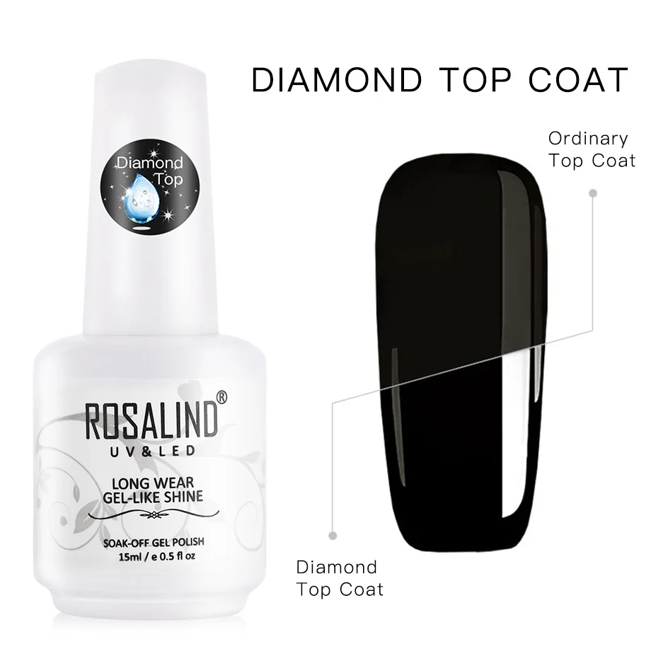 Верхнее покрытие ROSALIND для ногтей 15 мл, Алмазный прозрачный отмачиваемый УФ-праймер, Гель-лак полуперманентный, все для маникюра
