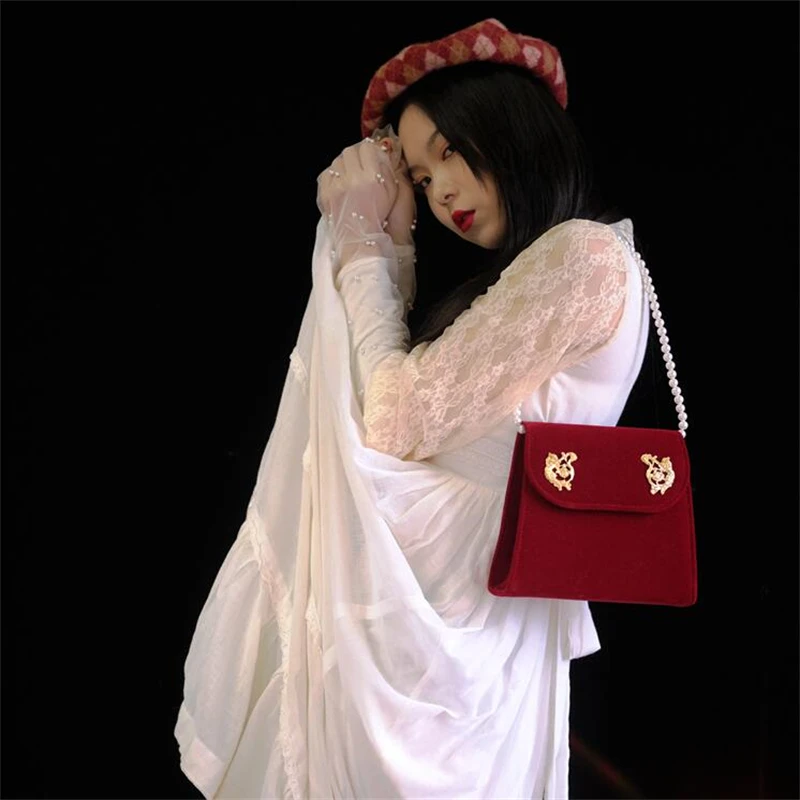 Дизайнерская женская сумка, винтажная маленькая квадратная сумка 2021, красные бархатные женские сумочки, женская сумка-мессенджер на плечо в стиле Cupid