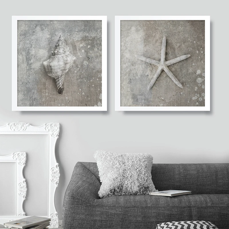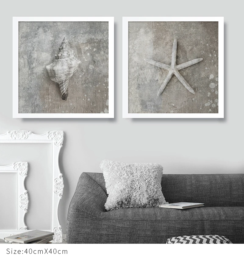 Картина Морская жизнь, постеры и принты в стиле ретро с ракушками, морскими звездами, скандинавские настенные картины на холсте для гостиной, Современный домашний декор