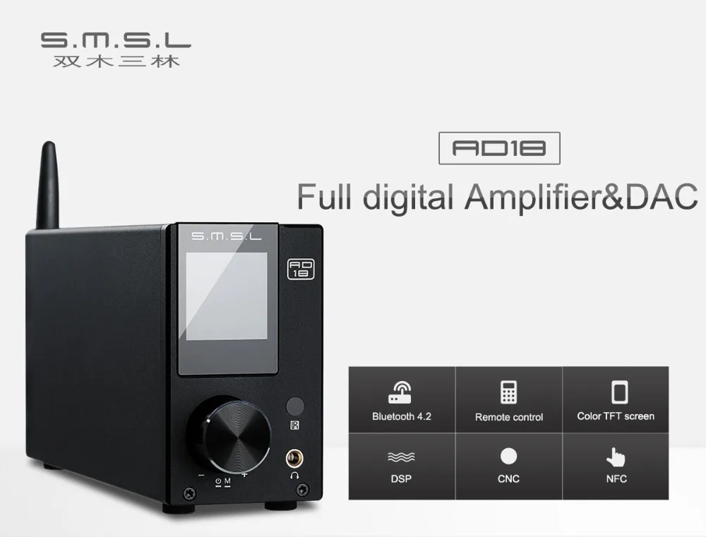 SMSL AD18 аудио цифровой усилитель Bluetooth 4,2 USB DAC усилитель аудио DAC Hifi усилитель мощности 2,1 Стерео Профессиональный Усилитель 80 Вт