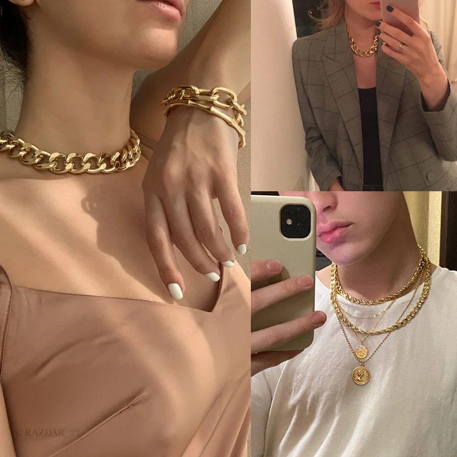 Стиль цепочки: золотая цепочка-чокерМатериал: нержавеющая сталь с позолотой 18 каратДлина цепочки: 35 см + 5 см и 40 см + 5 смРазмер: как на картинке