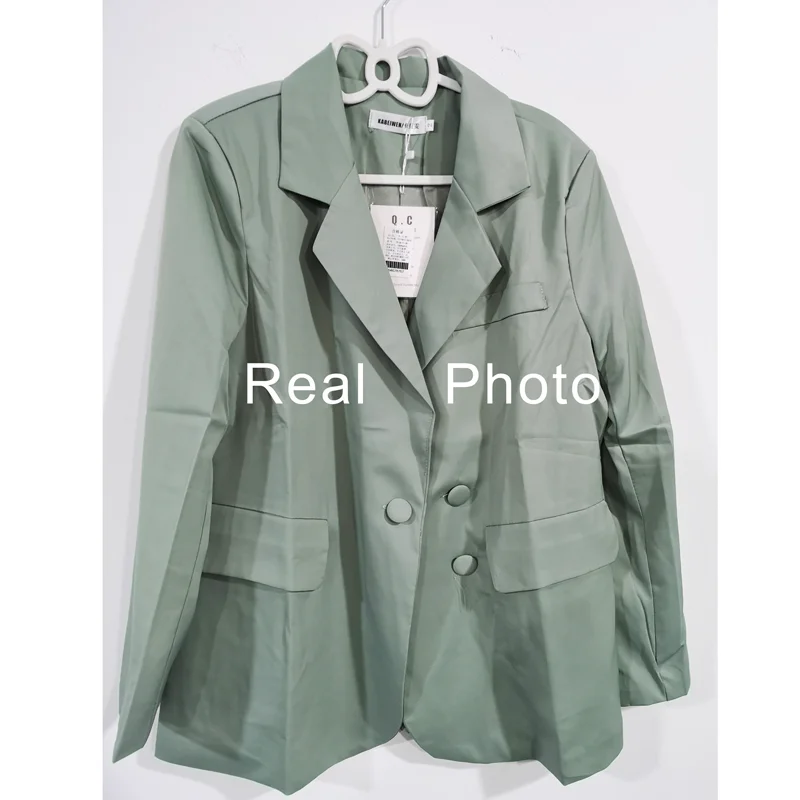 Женский офисный блейзер с длинным рукавом, черный свободный зеленый...