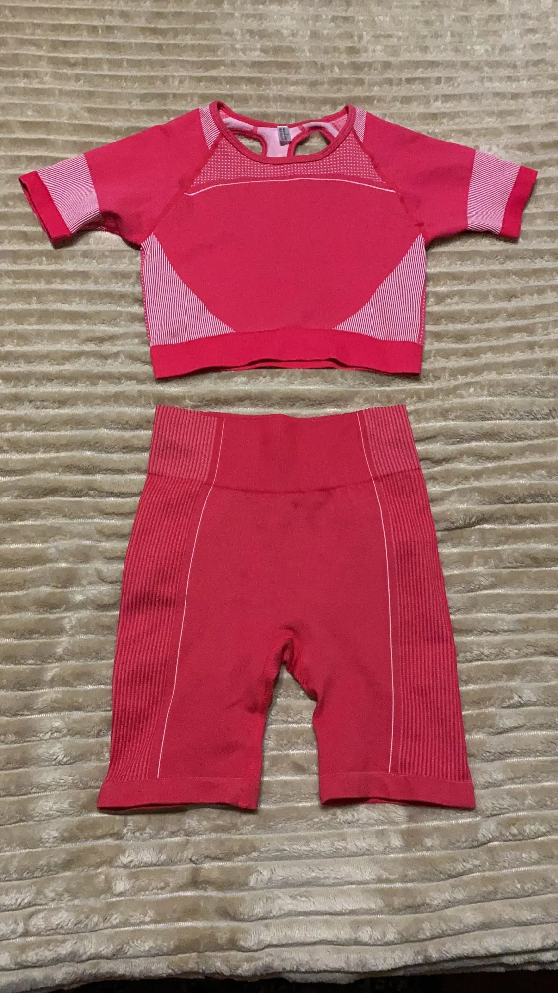 Комплект Для Йоги Женский бесшовный, топ с коротким рукавом и шорты с высокой талией