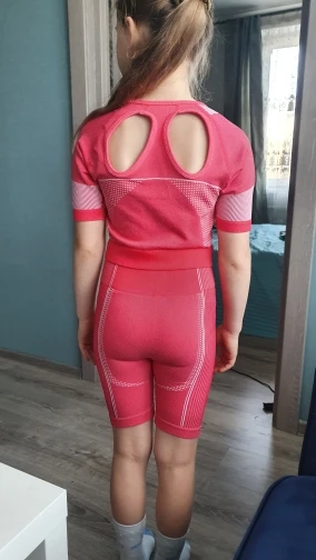 Качество костюма мне очень понравилось: есть эффект утяжки, ткань тянется. Но...мои параметры 83-72-100 топ идеально сел (хотя думала, что будет большой), а бриджи маленькие!!! Я в них влезла, но очень обтянуто и просвечивают. Итог: оставлю комплект, тк топ мне понравился, а шорты отдам подруге.