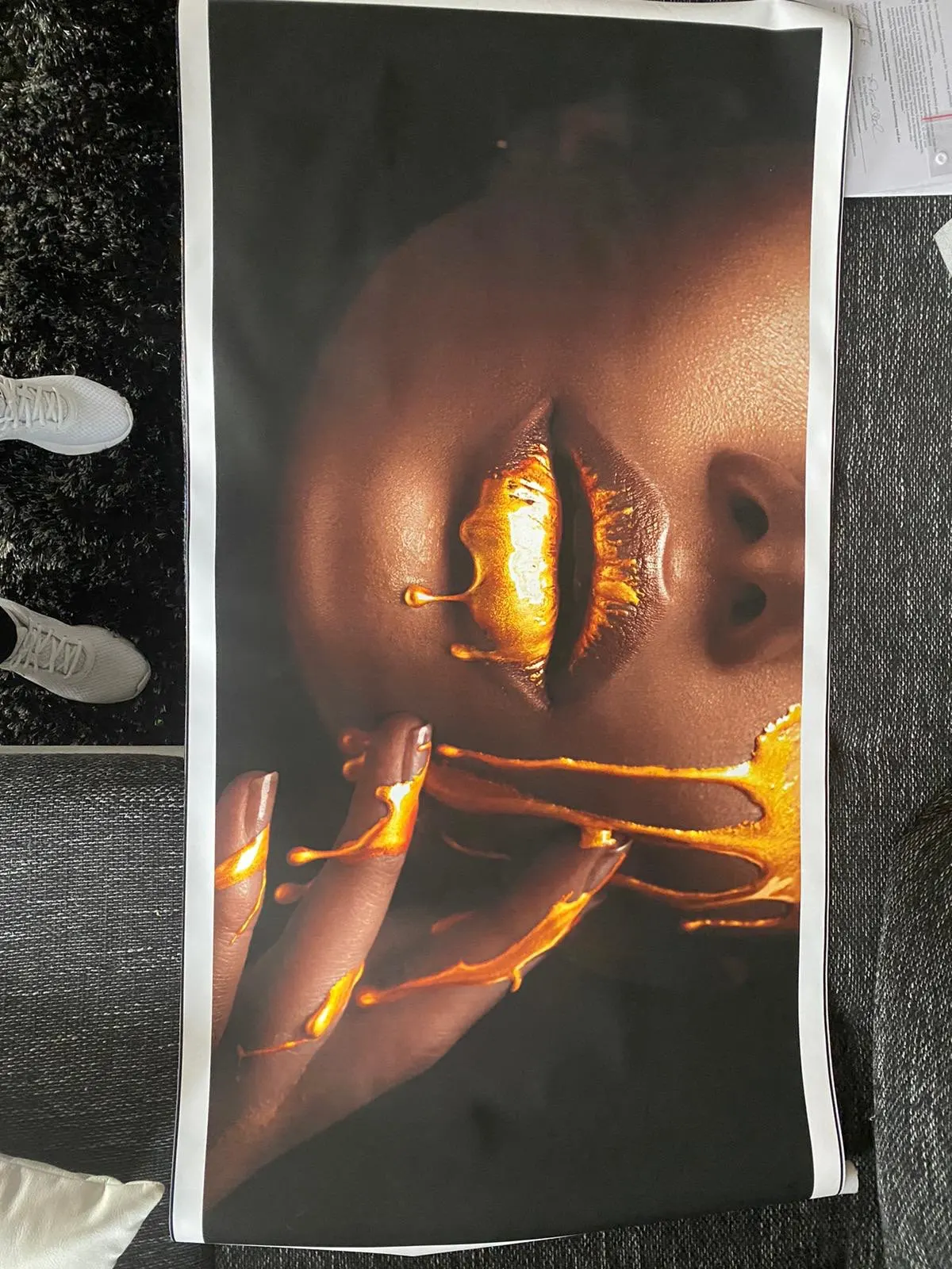 Картина с изображением золотых сексуальных губ и черных каванов, пл...