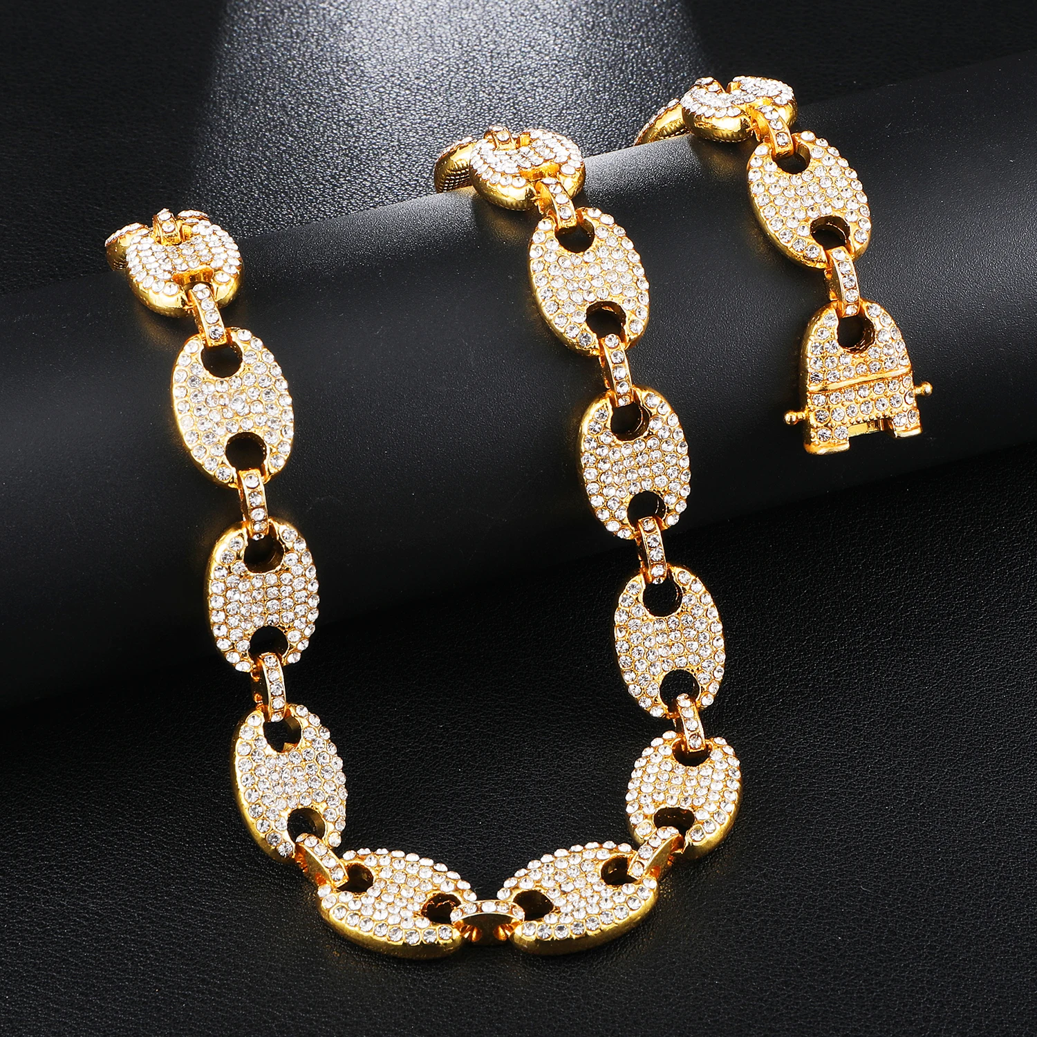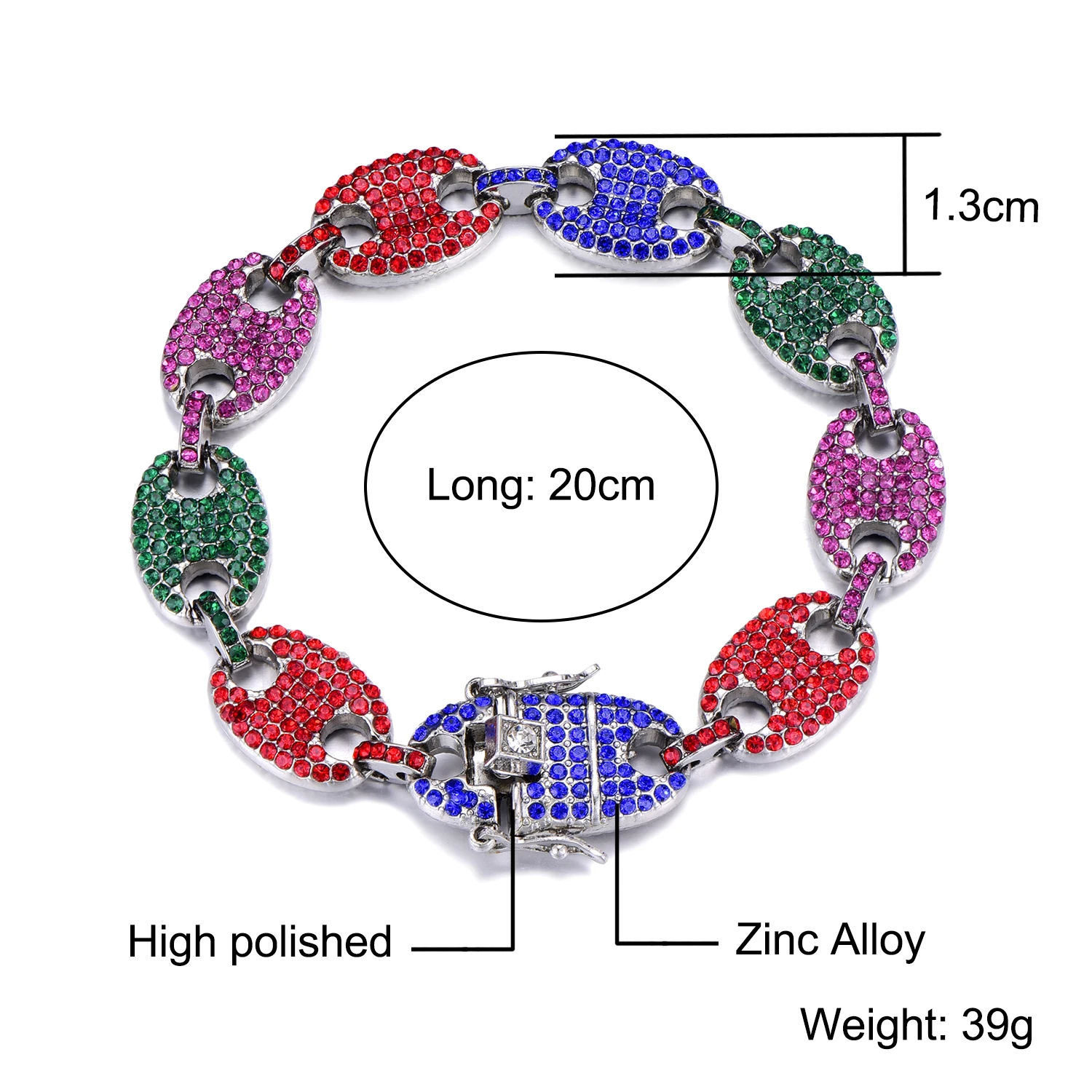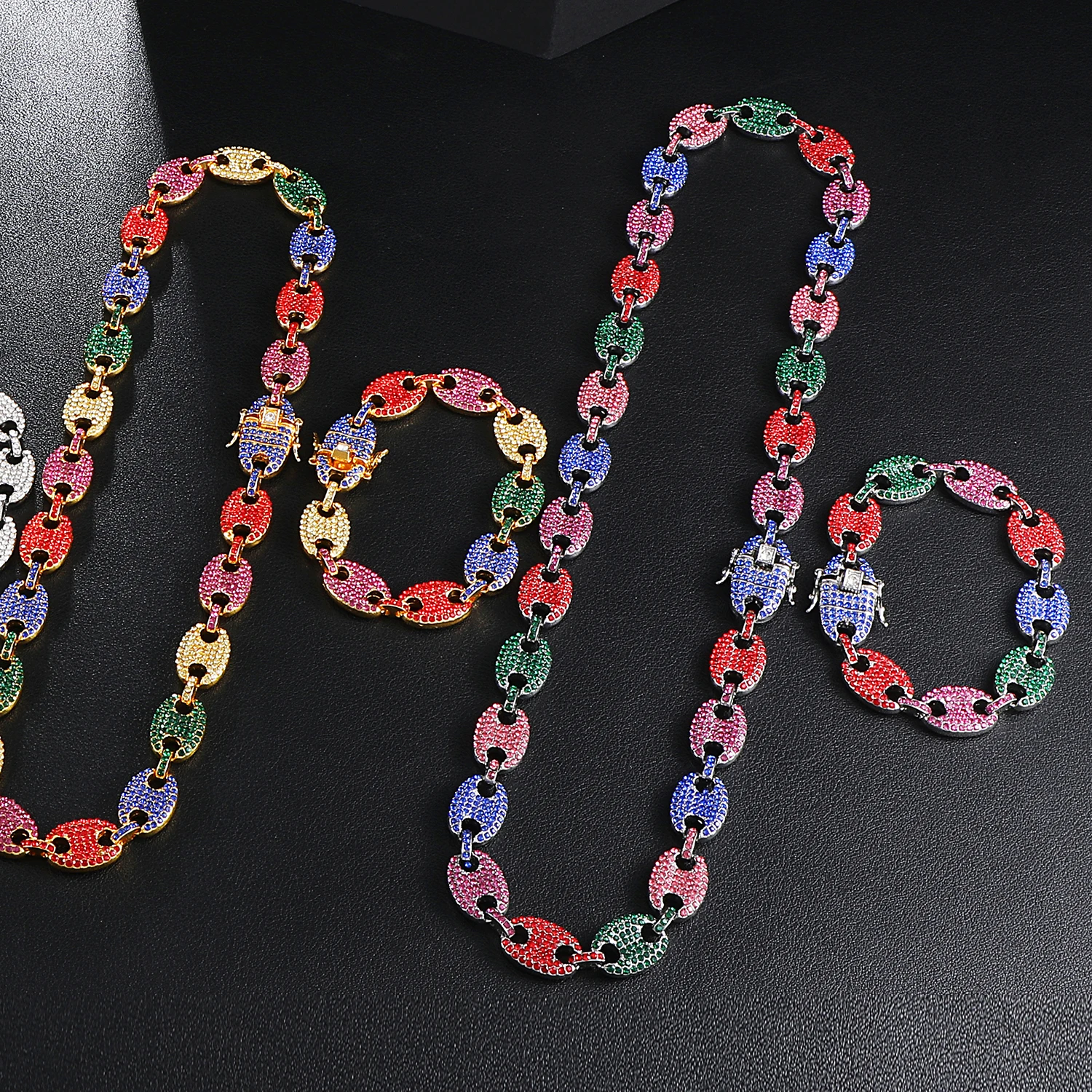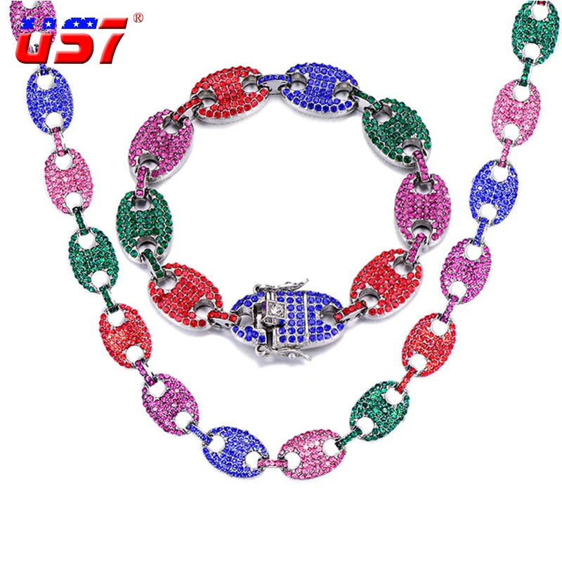 Браслет и ожерелье US7 в виде кофейных зерен, Многоцветный комплект из цепочки с микро-Фианитами, Очаровательная цепочка в стиле хип-хоп для мужчин и женщин, 13 мм, Подарочная бижутерия