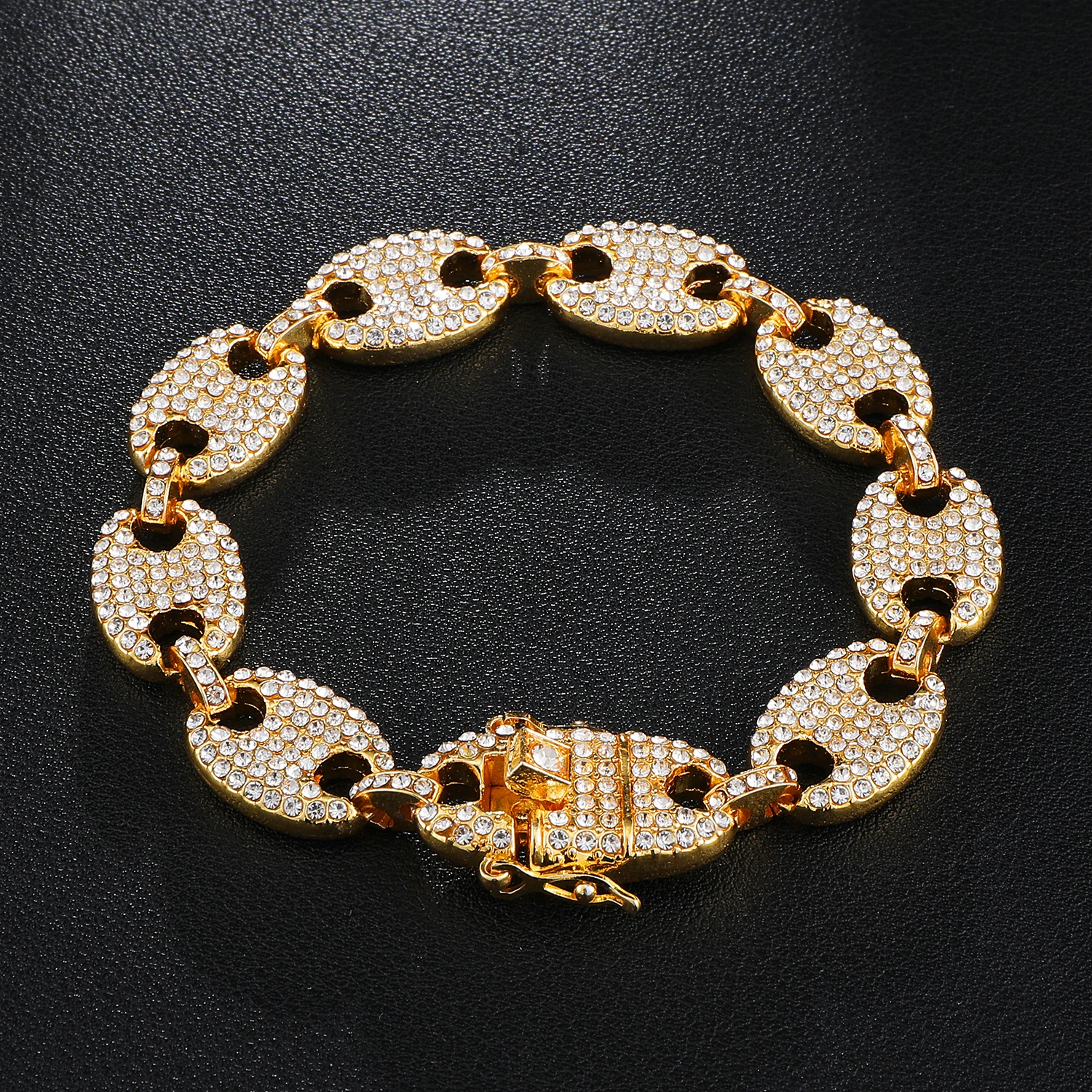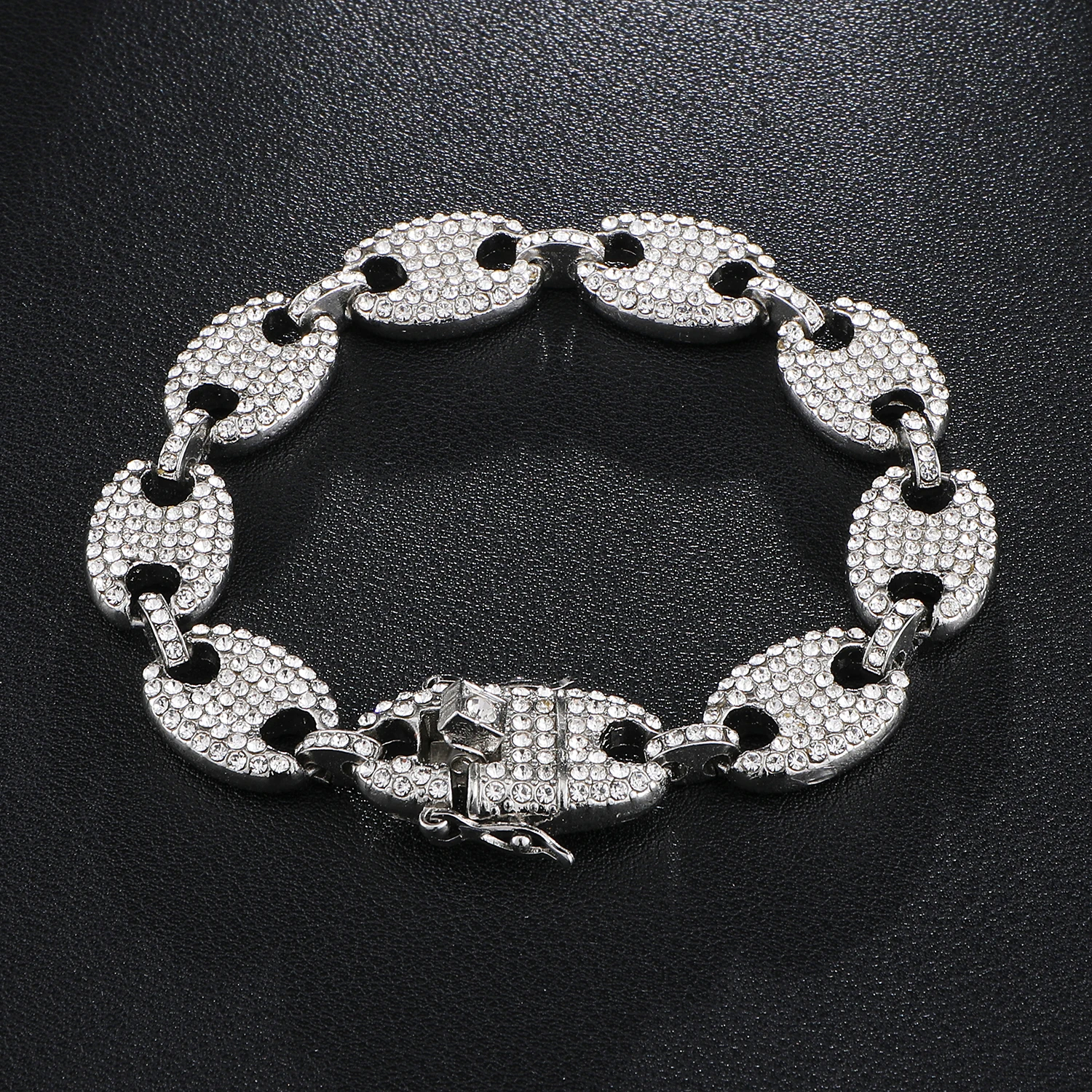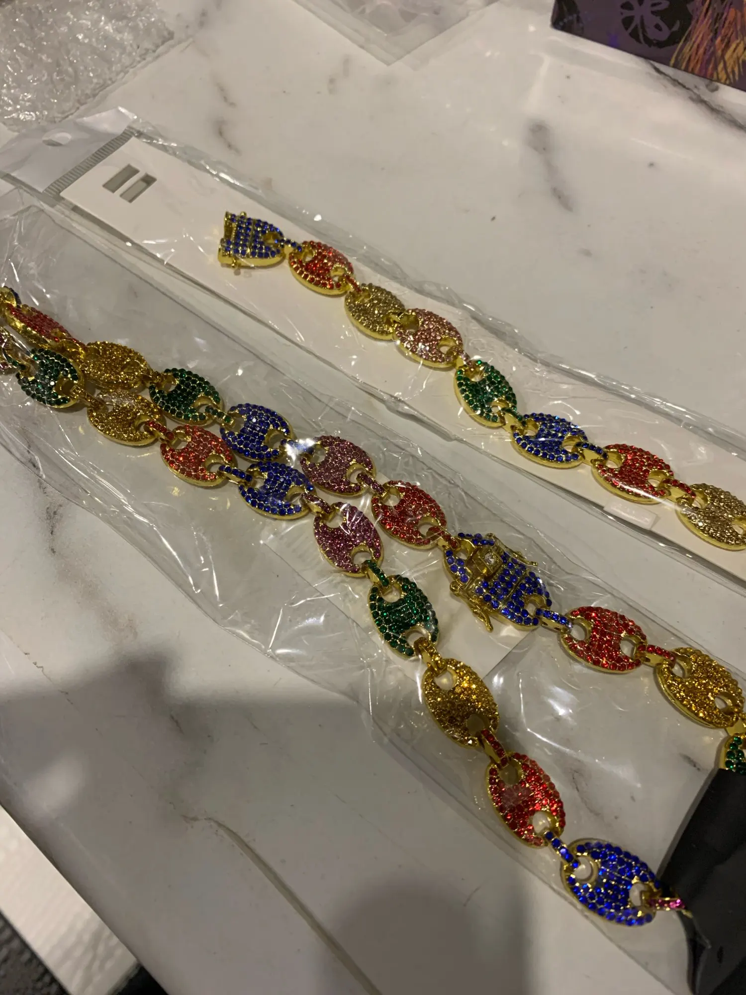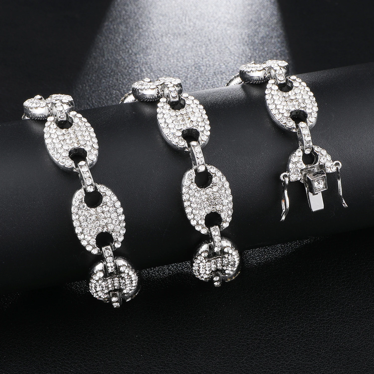 Браслет и ожерелье US7 в виде кофейных зерен, Многоцветный комплект из цепочки с микро-Фианитами, Очаровательная цепочка в стиле хип-хоп для мужчин и женщин, 13 мм, Подарочная бижутерия